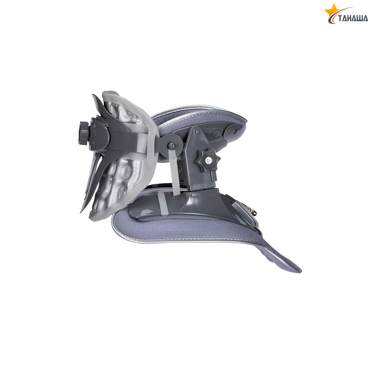 Hai bên phải trái có 2 nút xoay cơ truyền lực bằng bánh răng kéo căng cột sống cổ phía trước ở mức tùy chỉnh của người sử dụng.