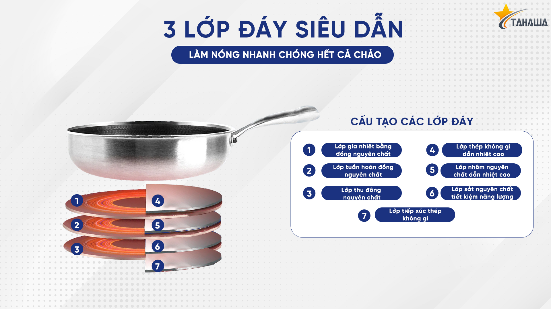 • Đáy 3 lớp dày nên trọng lượng nặng, phù hợp với bếp từ hơn các loại bếp khác