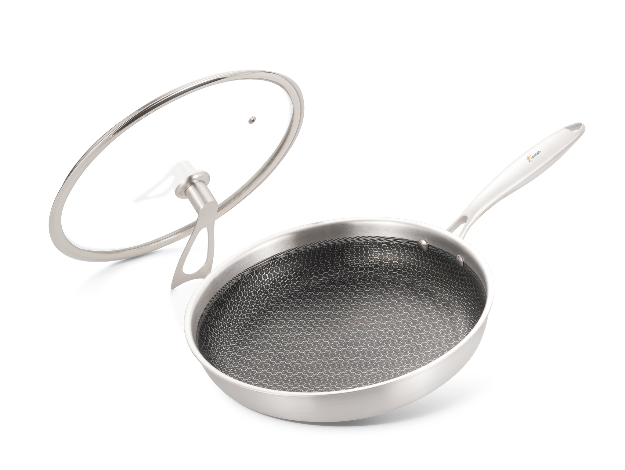 • Sử dụng công nghệ khoan khắc bề mặt inox để làm trồi lên những trụ nhỏ xếp hình tổ ong, trụ inox trồi cao che chắn và bảo vệ những tác động từ các dụng cụ nấu ăn lên lớp không dính.
