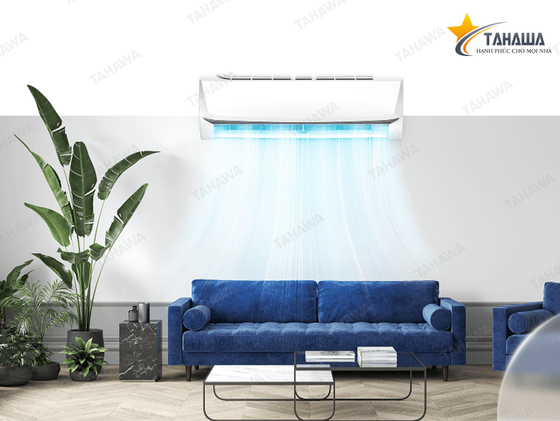 Máy lạnh Tahawa AH-X10ZEW không chỉ làm lạnh nhanh mà còn có khả năng thổi luồng khí xa lên đến 15m nhờ cơ chế thổi gió Coanda.