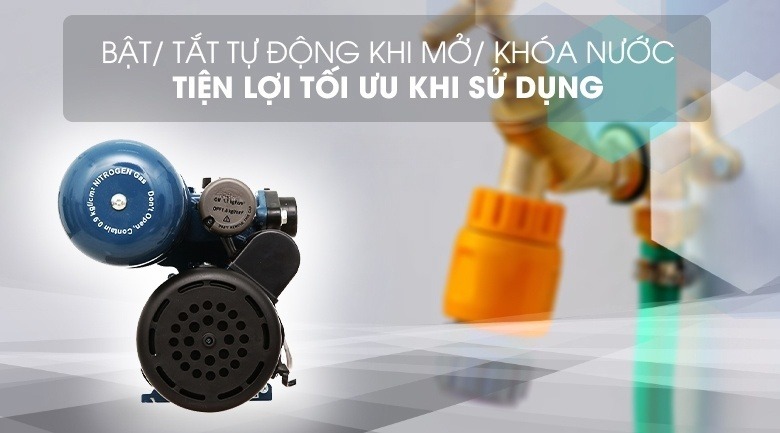 Bầu tăng áp lực của máy được làm từ cao su Butyl chất lượng cao, vừa chắc chắn, vừa bền bỉ. Nhờ đó, máy tự động tăng áp lực nước bơm ra, hỗ trợ hiệu quả cho những khu vực có nguồn nước yếu. Điều này đặc biệt hữu ích trong các gia đình khi cần tăng áp lực nước cho các thiết bị như máy giặt hoặc vòi sen. Dòng nước được bơm ra mạnh mẽ và ổn định, mang lại trải nghiệm sử dụng tốt hơn cho mọi người.