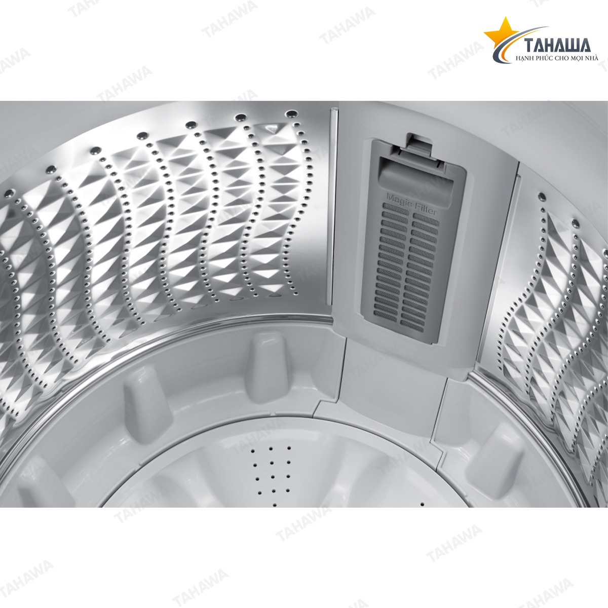 Bên cạnh đó, máy còn được trang bị bộ lọc xơ vải Magic Filter, giúp giữ lại xơ vải, lông thú cưng, tránh tắc nghẽn ống thoát nước và giúp quần áo luôn sạch đẹp.