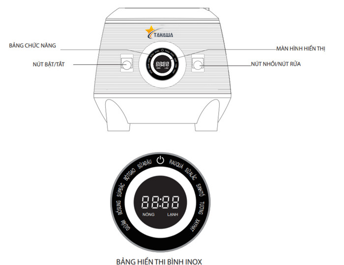 Máy làm sữa hạt Tahawa gồm các bộ phận sau: