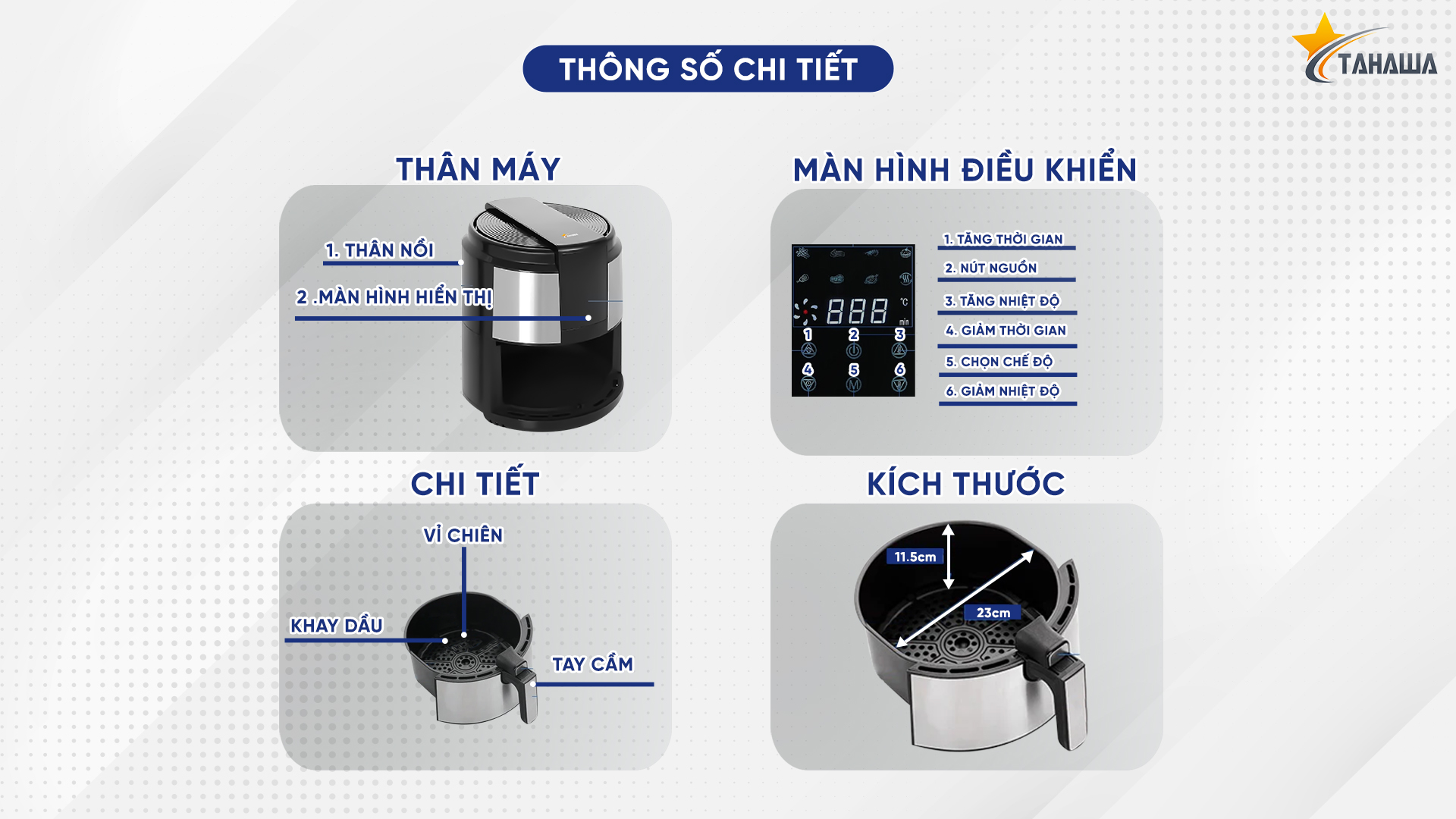 - Tên sản phẩm: nồi chiên không dầu Tahawa TH-221