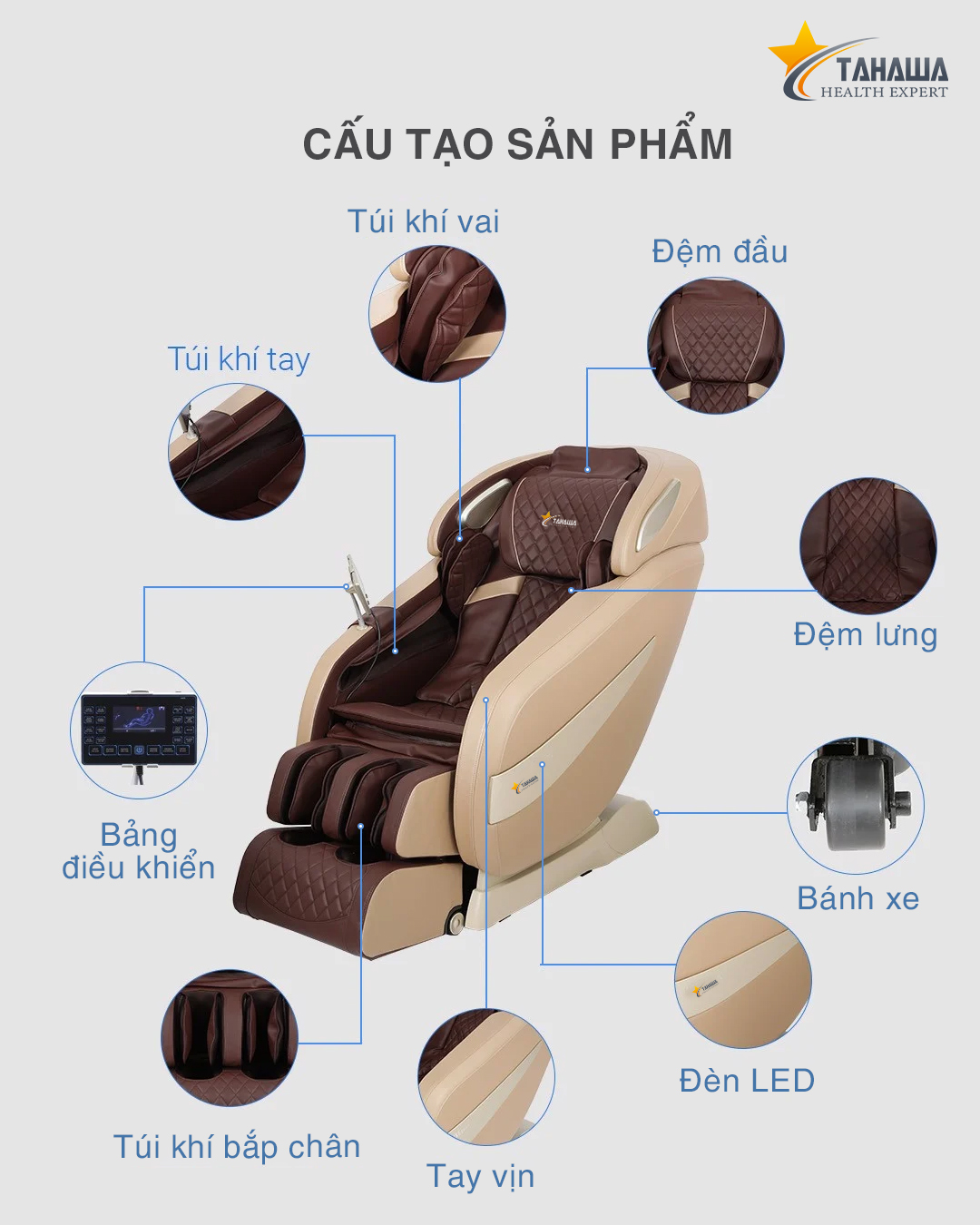 Người ta ví đời người như một trận đá bóng. Nửa hiệp trước là học hành, quyền lực, tiền tài, danh vọng, thành tích, tăng lương, tiến chức. Còn nửa hiệp sau là huyết áp, mỡ máu, tiểu đường, ung thư, cô đơn, sầu não. Đừng miệt mài kiếm tiền, đừng đợi về già mới tận hưởng, hãy chăm sóc sức khỏe của mình ngay khi có thể vì nó là nền tảng vững chắc của cuộc sống hạnh phúc. Ghế massage Tahawa TH-327 với thiết kế cực chắc chắn, tông màu đen chủ đạo là một trong những thiết bị thông minh chăm sóc sức khỏe tại nhà, vừa xua tan mệt mỏi căng thẳng, giảm đau nhức, hỗ trợ phòng bệnh tật vừa góp phần làm tăng sự sang trọng cho ngôi nhà của bạn.