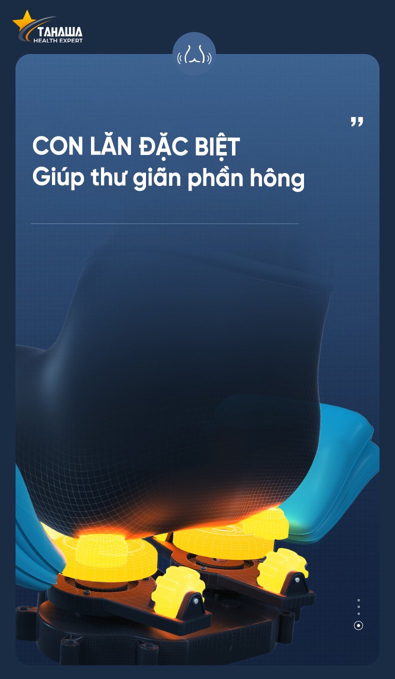 Ngoài ra trên TH-XR28 có hệ thống con lăn đặc biệt giúp thư giãn phần hông hiệu quả đặc biệt đối với những người thường xuyên chơi thể thao, dân lái xe hay văn phòng phải ngồi nhiều.