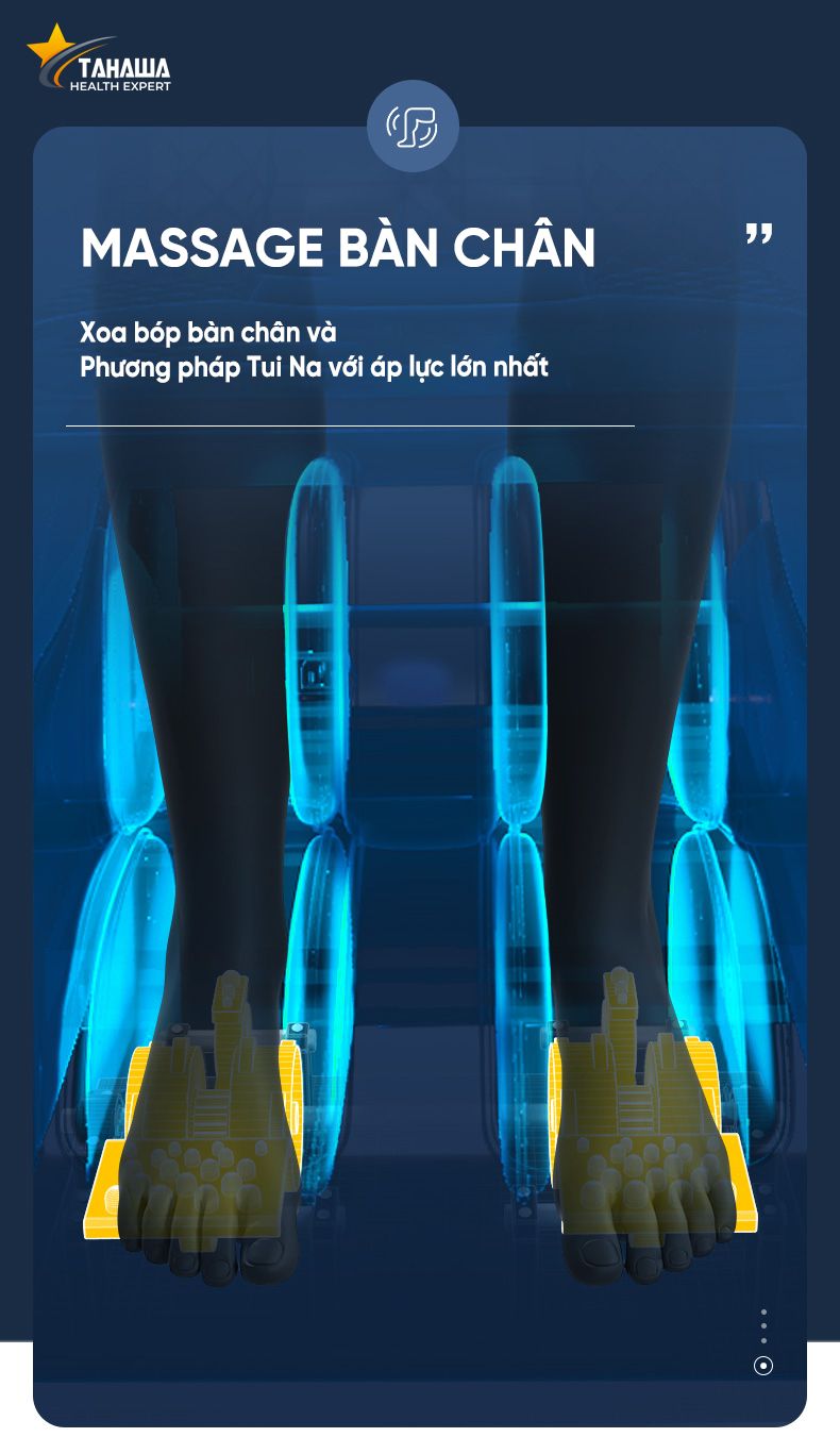 - Ghế massage Tahawa TH-XR28 có tích hợp con lăn chuyên biệt kết hợp cùng hệ thống túi khí bao quanh vùng bắp chân giúp xoa bóp bắp chân và lòng bàn chân được hiệu quả nhất. Khi hoạt động, con lăn sử dụng kỹ thuật xoa bóp, ấn huyệt bàn chân, massage toàn diện từ ngón chân tới gót chân.