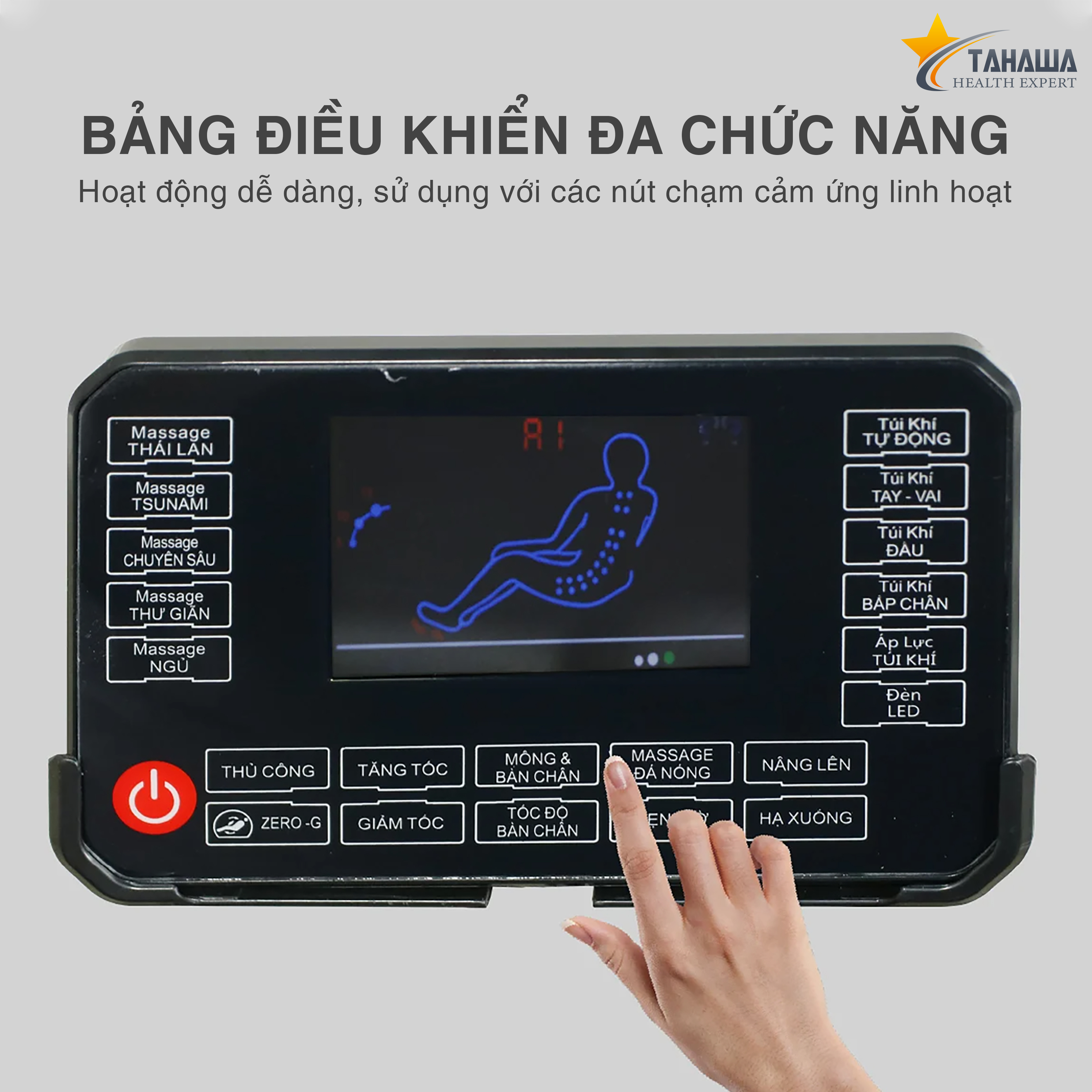 Ghế Massage Tahawa TH-331 sở hữu bảng điều khiển cảm ứng thông minh giúp bạn dễ thao tác, thuận tiện trong quá trình sử dụng. Việc duy nhất bạn nên làm khi ngồi trên chiếc ghế này là tận hưởng sự “chăm sóc tận tình” từ đầu đến chân mà Tahawa TH-331 mang lại.