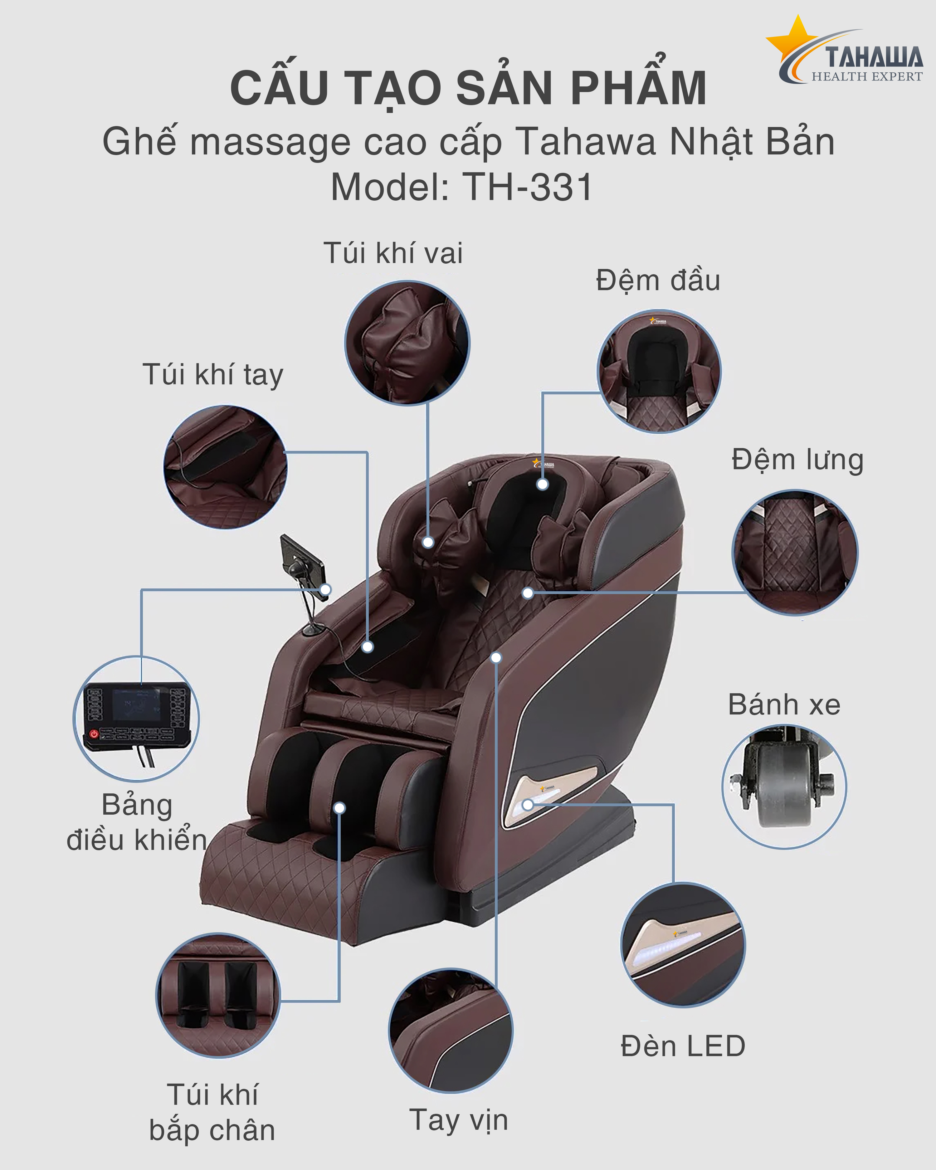 Ghế massage Tahawa TH-331 không chỉ là một thiết bị hữu ích giúp giải tỏa căng thẳng sau những giờ làm việc căng thẳng mà nó còn là một món đồ nội thất sang trọng cho căn nhà của bạn, là một trong những thiết bị thông minh chăm sóc sức khỏe tại nhà. Tất cả các chức năng mới nhất như điều khiển bằng giọng nói, phím điều khiển nhanh hay tích hợp sạc điện thoại,… đều hội tụ trong siêu phẩm ghế Tahawa TH-331.