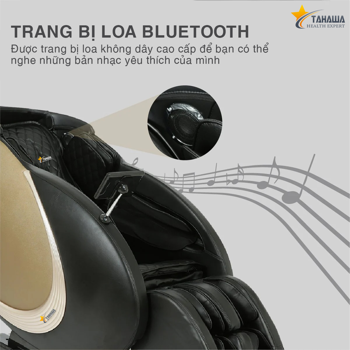 Ghế massage Tahawa TH-335 giúp bạn thả lòng mình với những giai điệu du dương trong âm nhạc bằng hệ thống loa ngoài hiện đại cho âm thanh cực chuẩn; thỏa thích thư giãn với những kỹ thuật massage được lặp trình sẵn mang lại cảm giác an yên, khoảng thời gian hạnh phúc và lắng đọng trong từng giai điệu âm nhạc mang lại giấc ngủ ngon hơn.