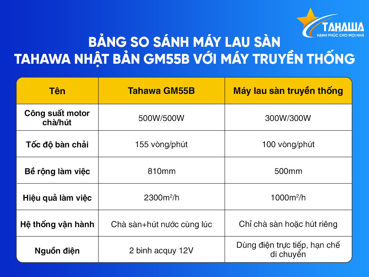 - 4. So sánh Tahawa Nhật Bản GM55B với các dòng máy lau sàn khác