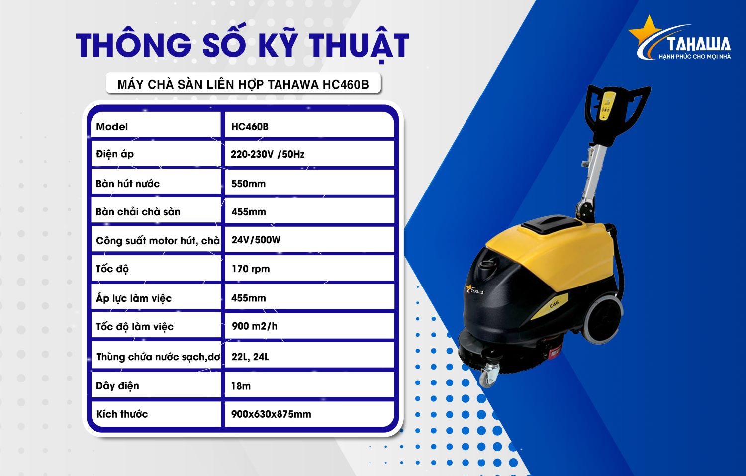 Nếu bạn đang tìm kiếm một máy chà sàn liên hợp mạnh mẽ, bền bỉ và tiết kiệm chi phí, Tahawa HC 460B chắc chắn là một sự lựa chọn đáng cân nhắc.
