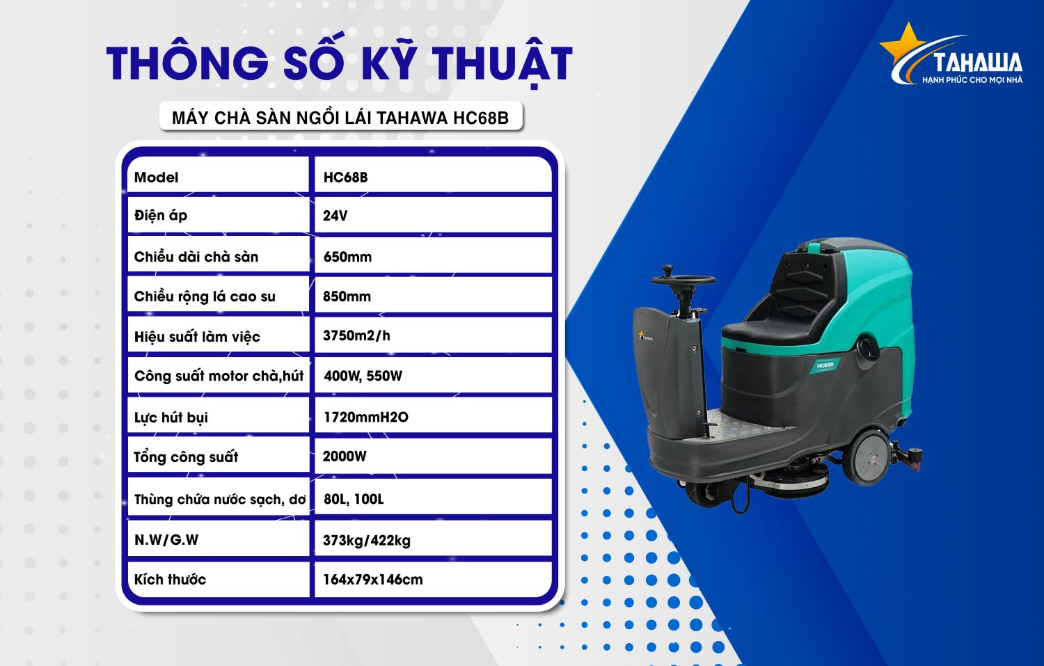 Trong lĩnh vực vệ sinh công nghiệp, việc sử dụng máy chà sàn ngồi lái ngày càng trở nên phổ biến nhờ khả năng làm sạch nhanh chóng và tiết kiệm nhân công. Máy chà sàn ngồi lái của Nhật Tahawa HC68B là một trong những sản phẩm tiêu biểu với hiệu suất làm sạch vượt trội, thiết kế hiện đại và khả năng vận hành mạnh mẽ. Đây là lựa chọn lý tưởng cho các khu vực có diện tích rộng như nhà xưởng, trung tâm thương mại, bệnh viện, sân bay và siêu thị.