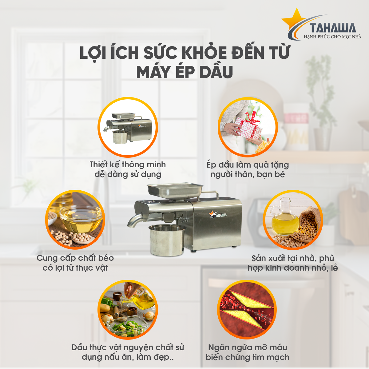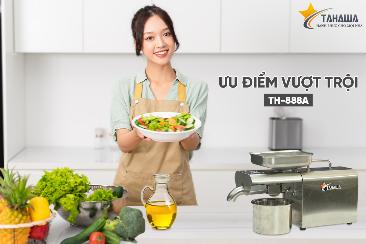 Vấn đề sức khỏe hiện nay đang rơi vào tình trạng đáng báo động khi, các chủ cơ sở sản xuất, hộ kinh doanh dầu ăn chỉ chạy theo lợi nhuận mà bất chấp cung cấp ra thị trường các loại dầu ăn giả, kém chất lượng, gây tổn hại đến sức khỏe và tính mạng người tiêu dùng. Cách tốt nhất bảo vệ bản thân và mọi người trong gia đình đó chính là tự ép dầu thực vật ngay tại nhà. Và Máy ép dầu thực vật dùng trong gia đình cao cấp TAHAWA TH-888A là thiết bị giúp các chị em có thể tự chế biến dầu ăn sạch ngay tại nhà nhanh chóng, chẳng còn lo dầu bẩn, dầu giả.