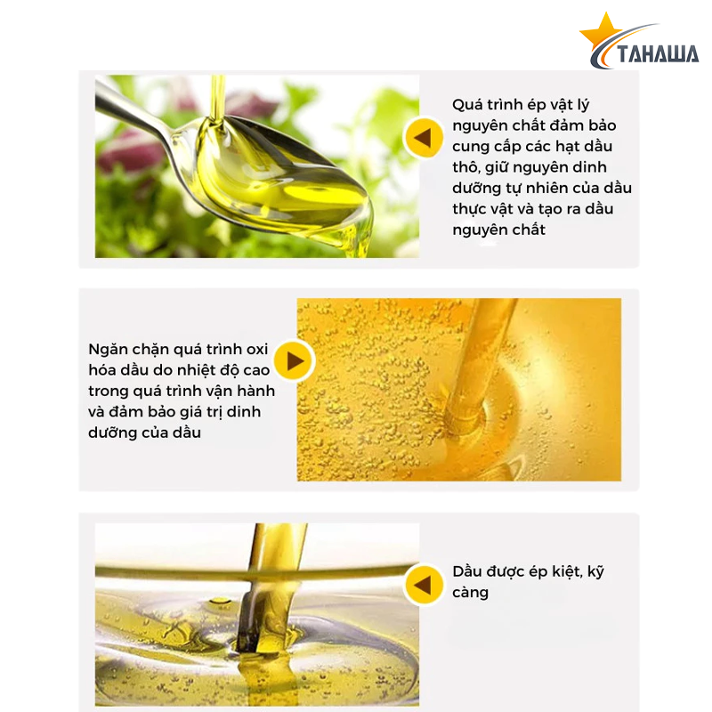 Máy ép dầu thực vật Tahawa TH-888A là sự lựa chọn lý tưởng cho mọi gia đình muốn tự sản xuất dầu ăn nguyên chất tại nhà. Với những ưu điểm vượt trội và tính năng hiện đại, sản phẩm này không chỉ mang lại hiệu quả cao mà còn đảm bảo chất lượng dầu tinh khiết, an toàn cho sức khỏe. Hãy sở hữu ngay máy ép dầu Tahawa TH-888A để trải nghiệm sự tiện lợi và chất lượng tuyệt vời mà sản phẩm mang lại.