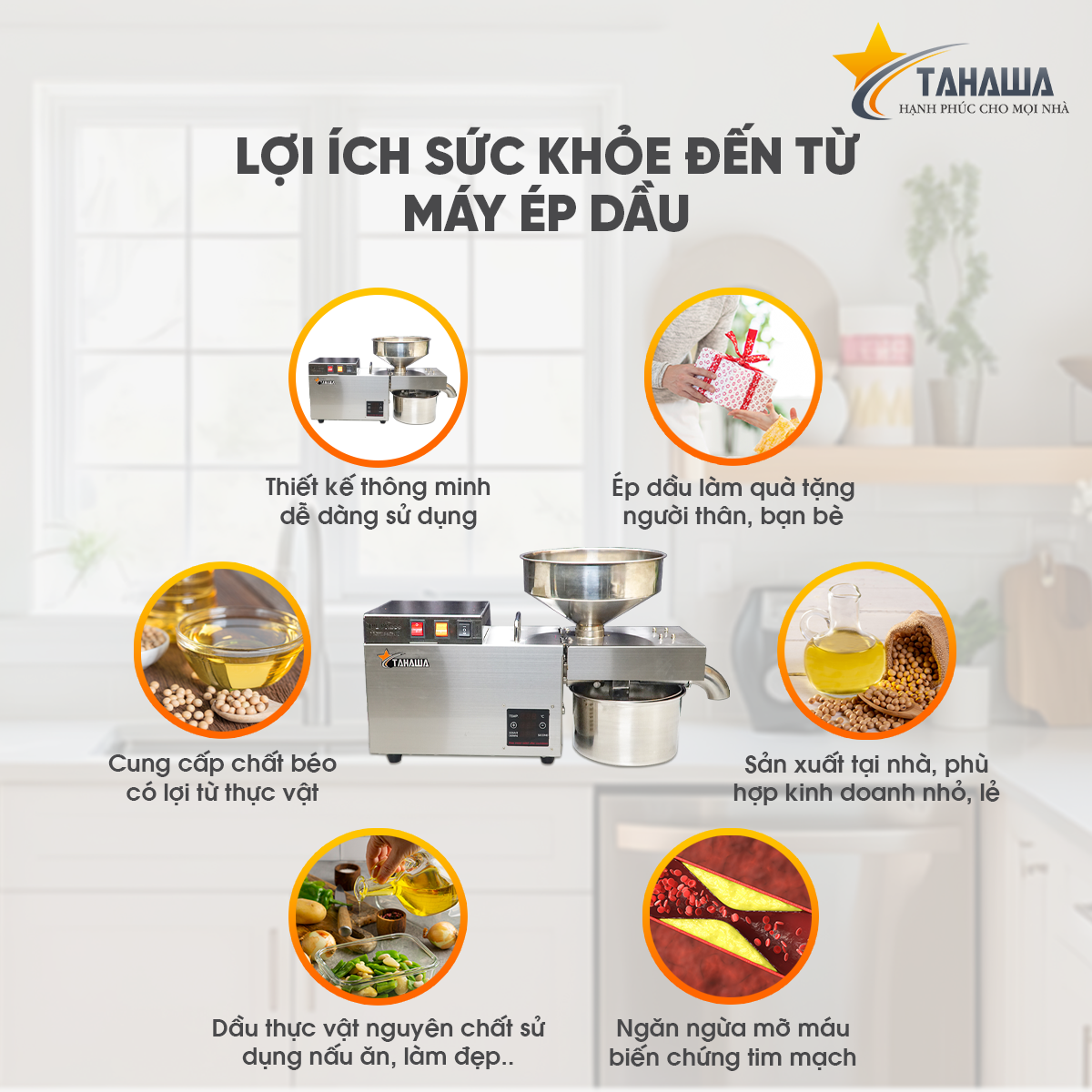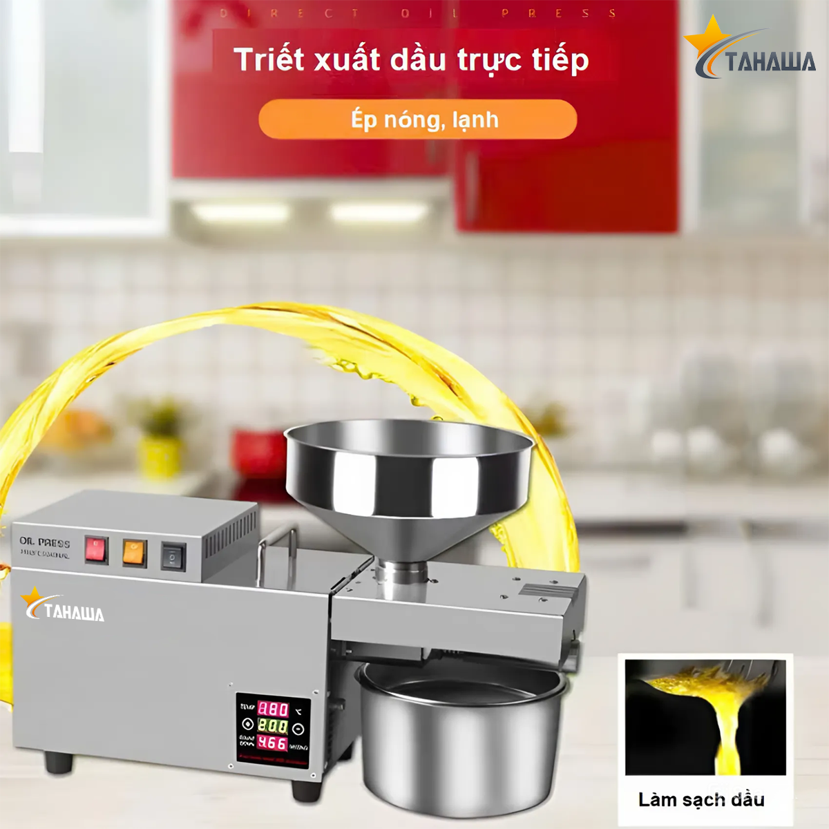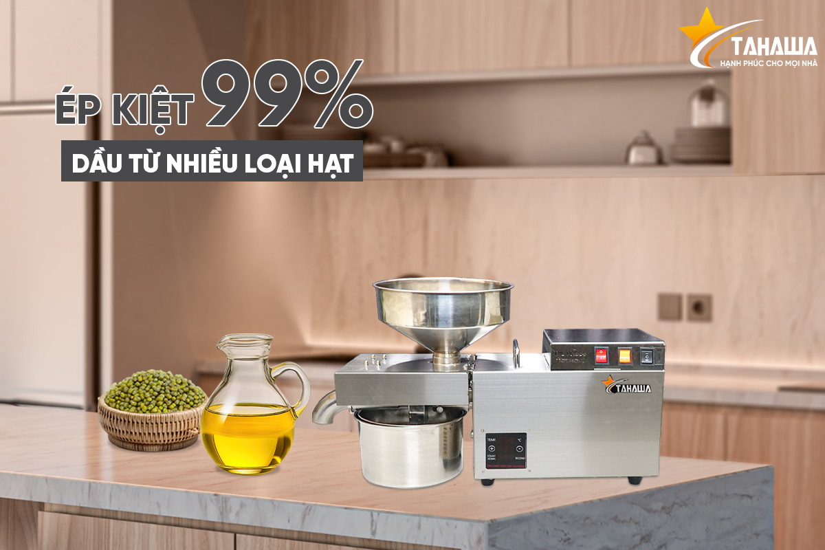 - Vấn đề sức khỏe hiện nay đang rơi vào tình trạng đáng báo động khi, các chủ cơ sở sản xuất, hộ kinh doanh dầu ăn chỉ chạy theo lợi nhuận mà bất chấp cung cấp ra thị trường các loại dầu ăn giả, kém chất lượng, gây tổn hại đến sức khỏe và tính mạng người tiêu dùng. Máy ép dầu Tahawa TH-S9S là thiết bị giúp các đầu bếp có thể tự chế biến dầu ăn sạch ngay tại nhà hàng, khách sạn hay trường học nhanh chóng, chẳng còn lo dầu bẩn, dầu giả.