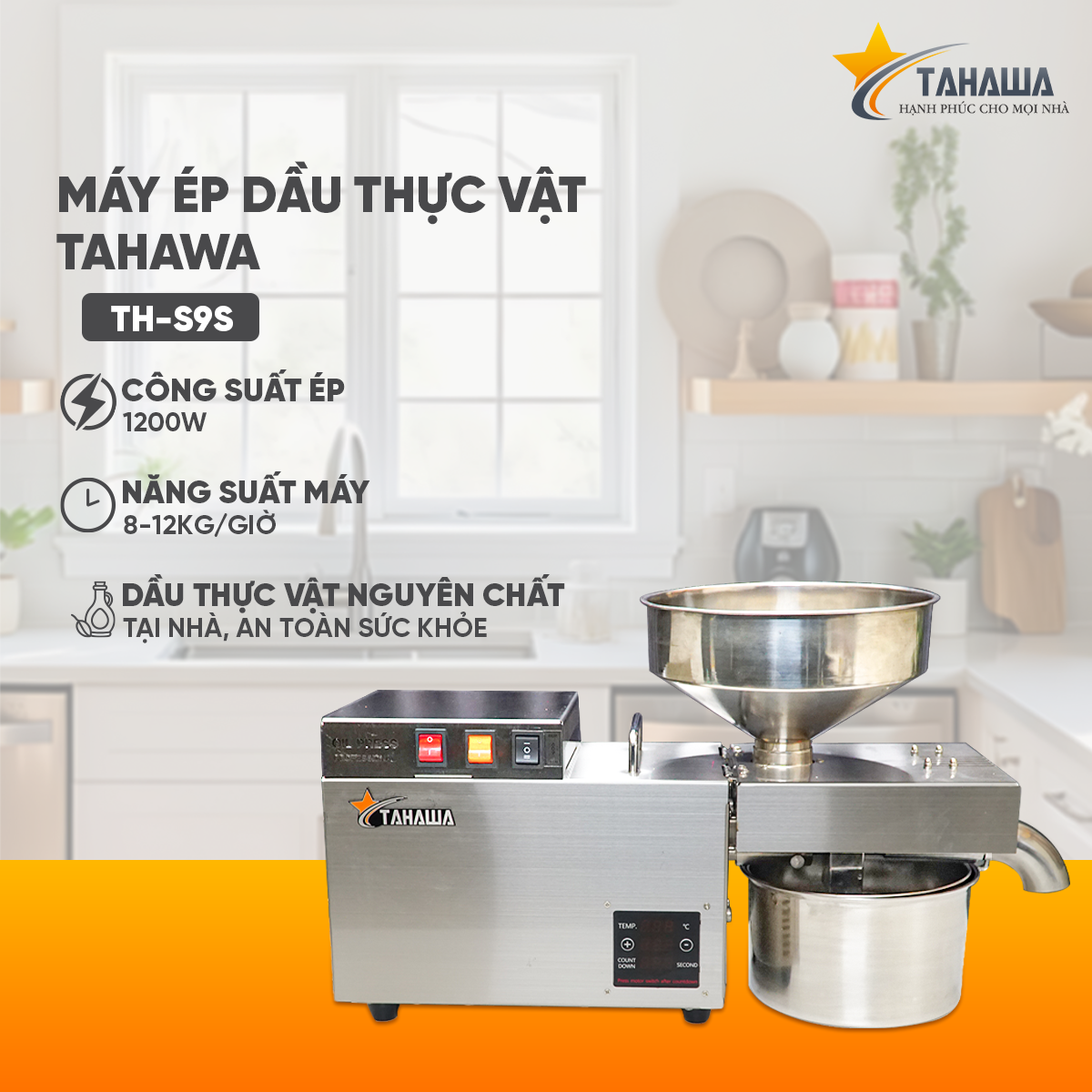 Với TH-S9S, mỗi giọt dầu bạn ép ra đều là tinh chất thiên nhiên thuần khiết, mang lại giá trị sức khỏe và sự an tâm tuyệt đối cho cả gia đình.