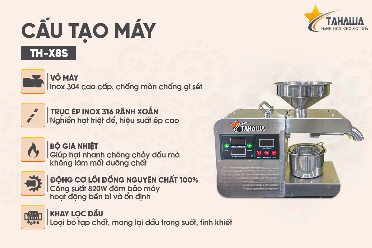 - Ưu Điểm Nổi Bật Của Máy Ép Dầu Thực Vật Tahawa X8S