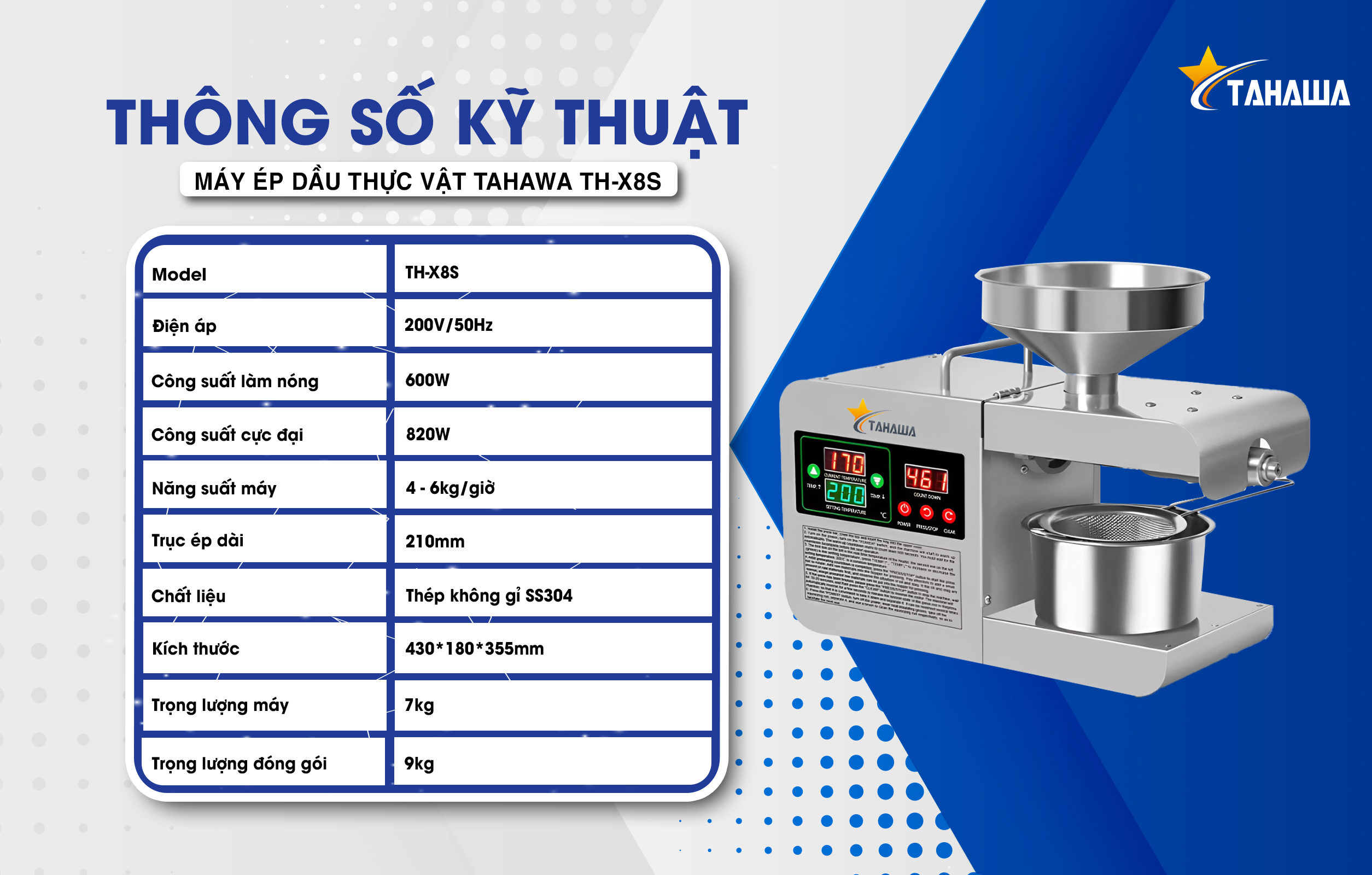 Máy Ép Dầu Thực Vật Tahawa X8S - Sự Lựa Chọn Hoàn Hảo Cho Gia Đình Bạn