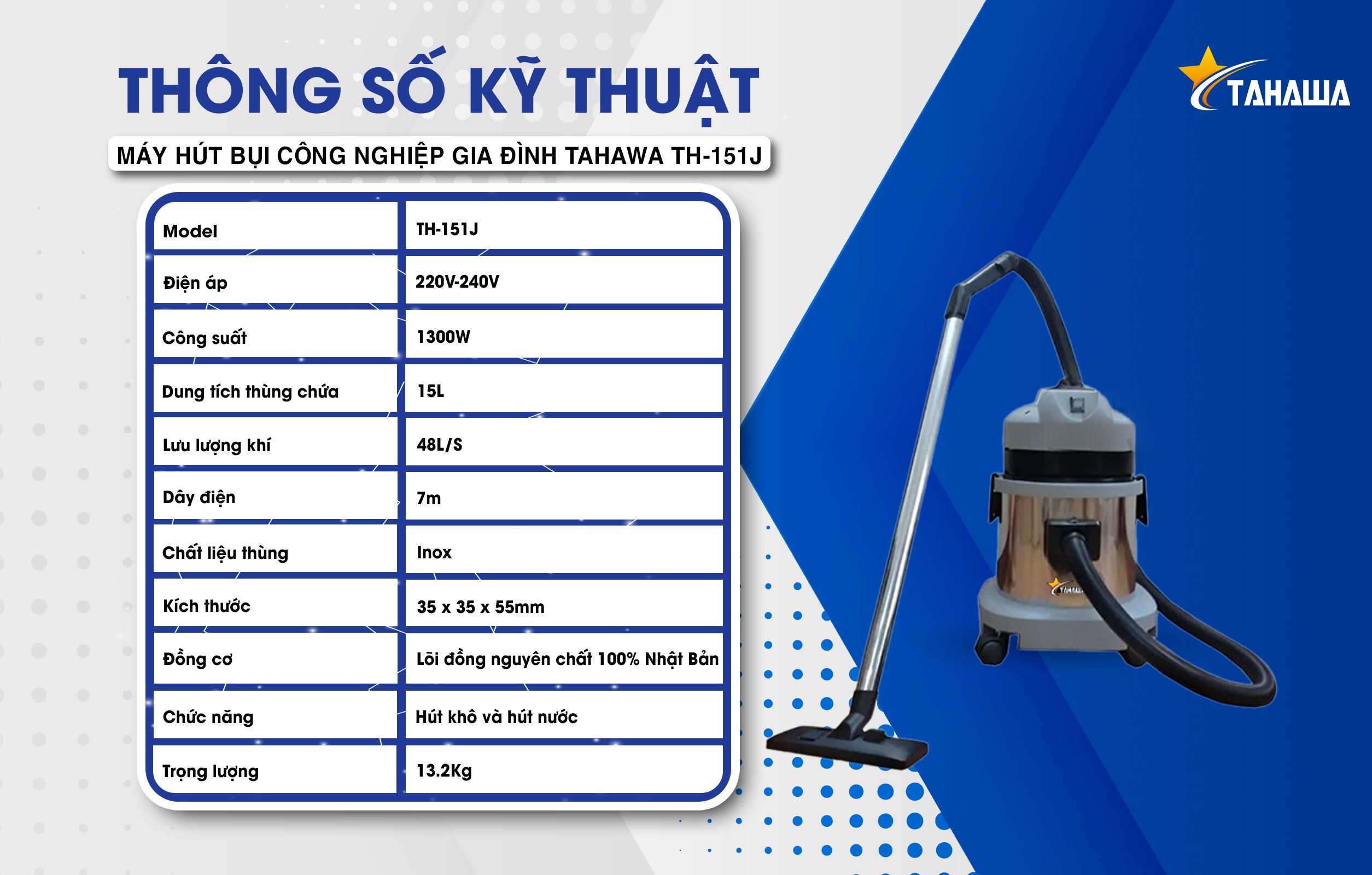ĐẶC ĐIỂM NỔI BẬT MÁY HÚT BỤI CÔNG NGHIỆP GIA ĐÌNH TAHAWA TH-151J