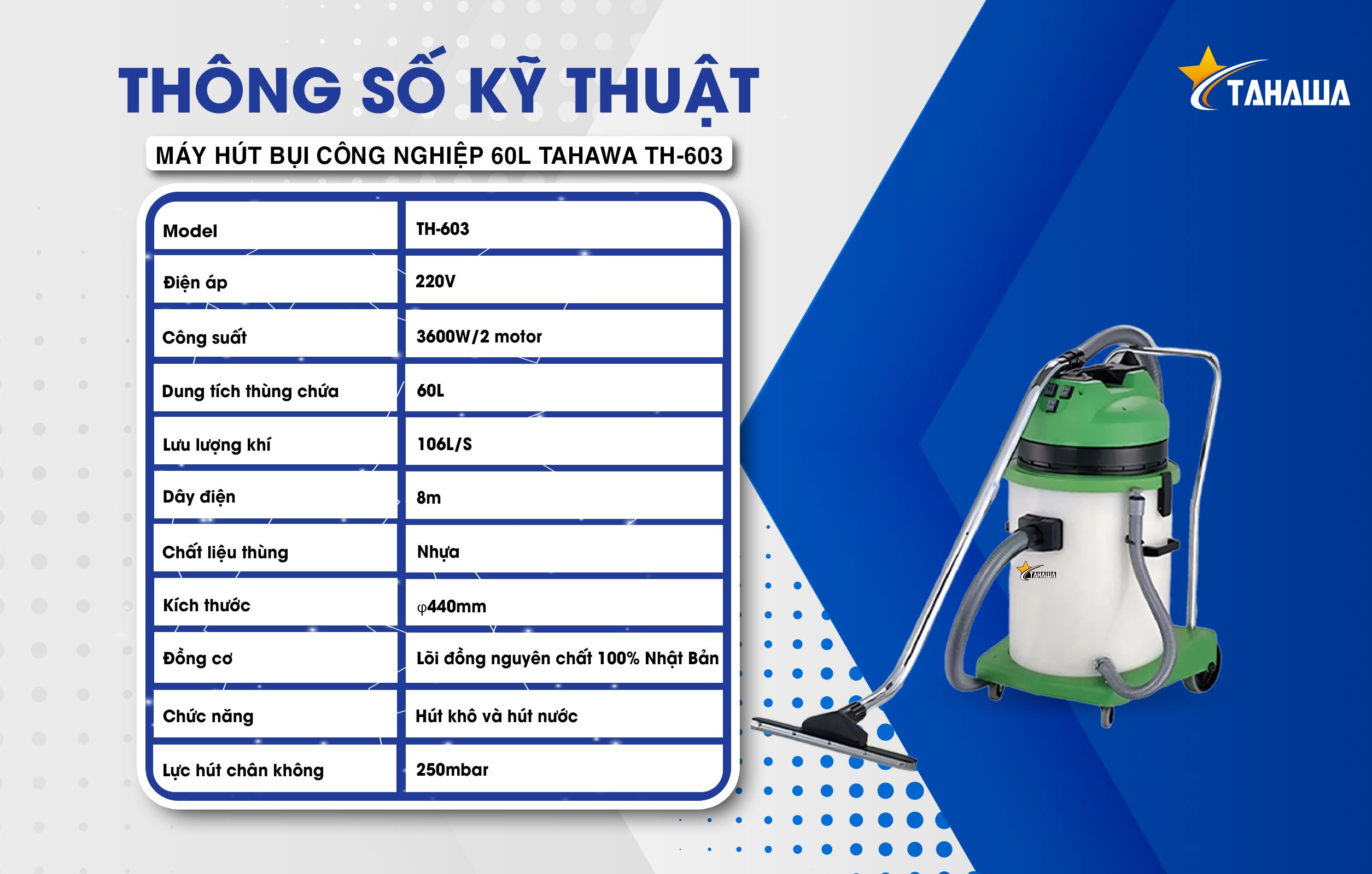 ĐẶC ĐIỂM NỔI BẬT MÁY HÚT BỤI CÔNG NGHIỆP TAHAWA TH-603