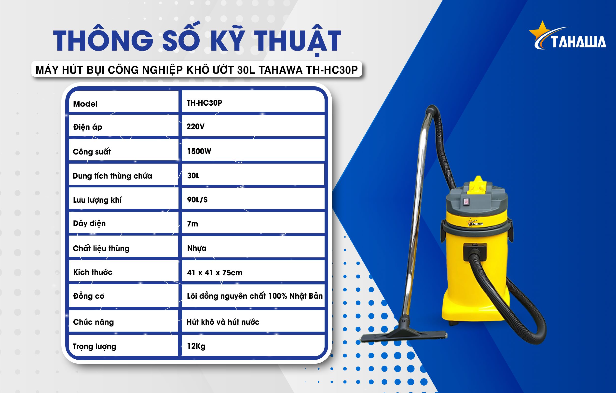 Thông số kỹ thuật của máy hút bụi công nghiệp Tahawa TH-HC30P