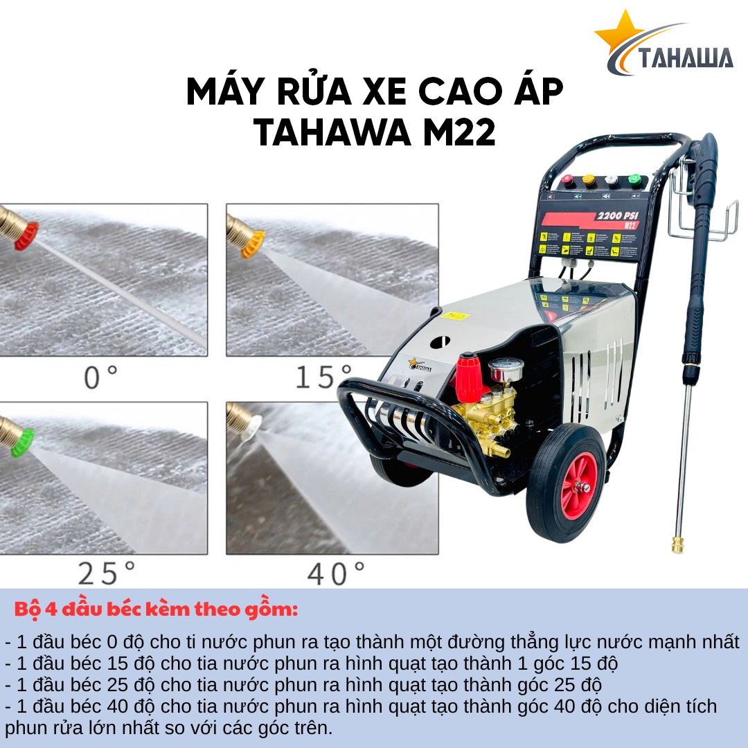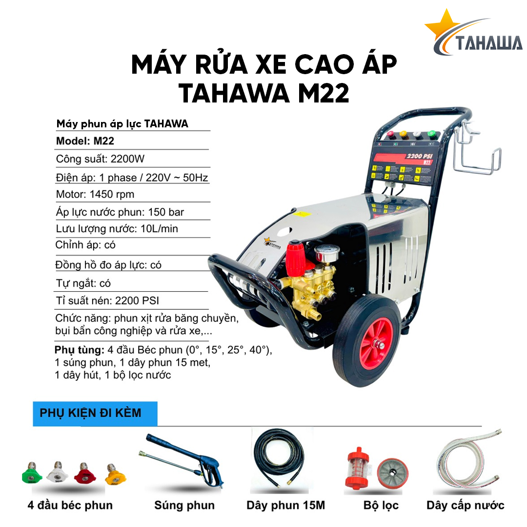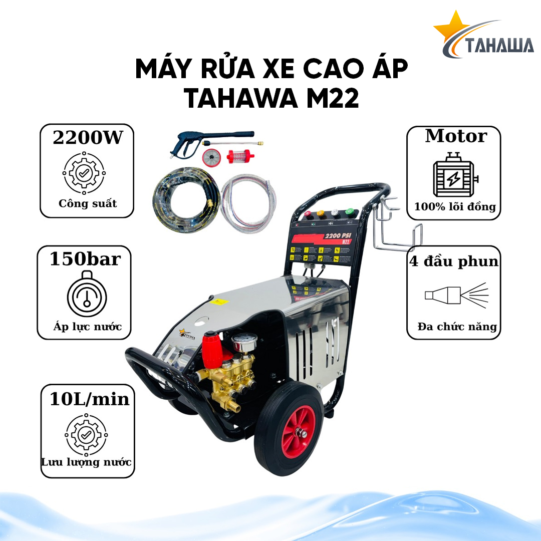 Máy phun áp lực TAHAWA M22 không chỉ là một thiết bị xịt rửa thông thường mà còn là giải pháp toàn diện cho các nhu cầu vệ sinh công nghiệp và gia đình. Với công suất mạnh mẽ, áp lực phun cao và các tính năng ưu việt, đây là sự lựa chọn lý tưởng cho những ai đang tìm kiếm một sản phẩm đáng tin cậy và hiệu quả trong việc làm sạch các vết bẩn cứng đầu, giúp môi trường làm việc và sinh hoạt trở nên sạch sẽ, an toàn hơn.