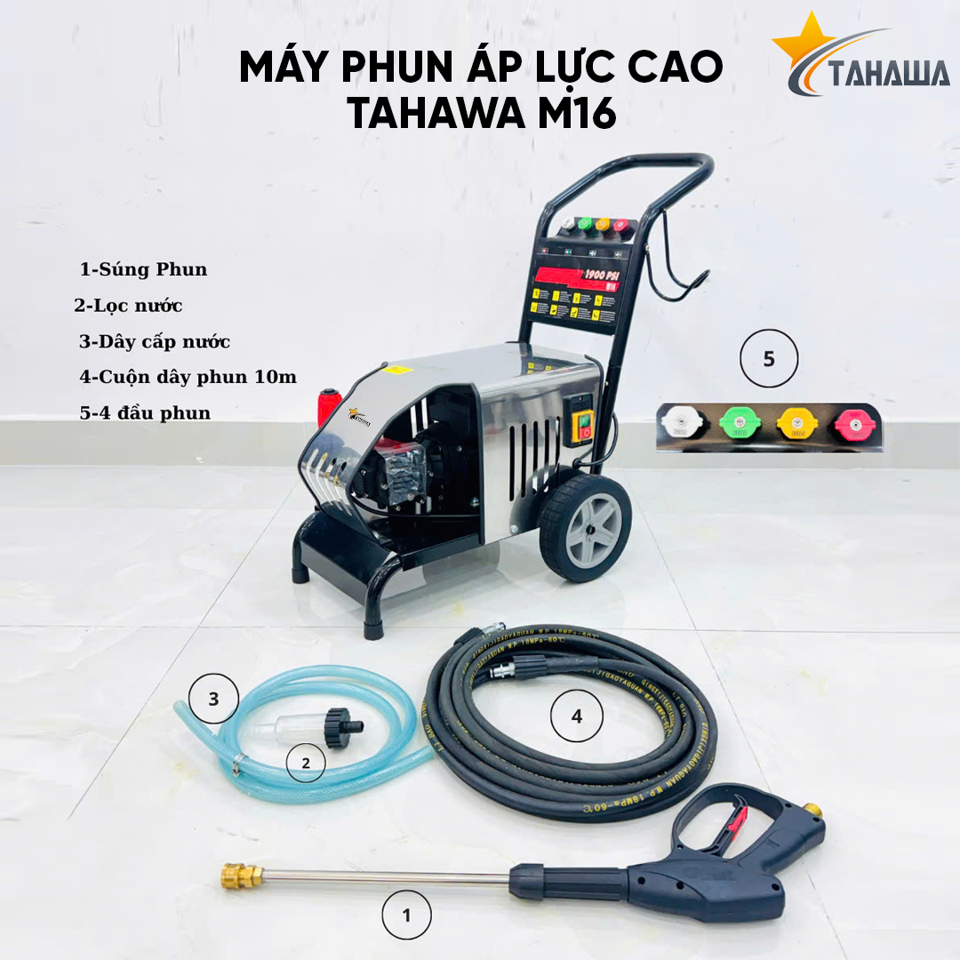 - 04 đầu phun 050 với các góc phun khác nhau, linh hoạt trong việc lựa chọn chế độ phun.