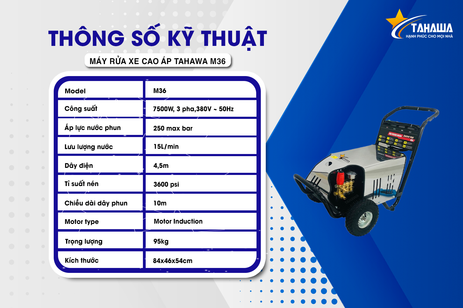 Giới thiệu sản phẩm: Máy phun áp lực TAHAWA M36 (Điện 3 Phase)