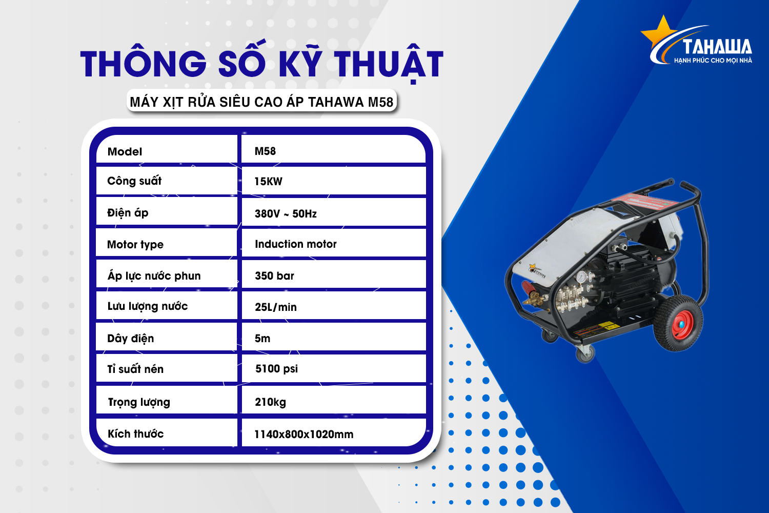 Với những ưu điểm vượt trội về công suất và độ bền, máy phun áp lực TAHAWA Model M58 là lựa chọn hàng đầu cho các nhu cầu phun rửa công nghiệp và vệ sinh nặng. Đây chắc chắn sẽ là người bạn đồng hành tin cậy giúp nâng cao hiệu quả công việc và mang lại trải nghiệm sử dụng tối ưu cho người dùng.