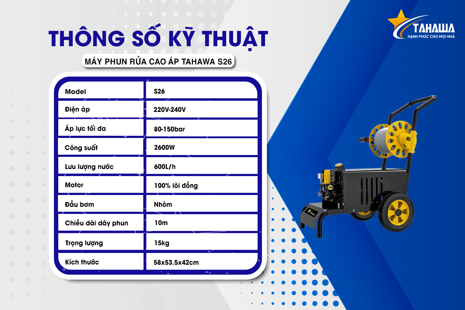 Giới thiệu sản phẩm: Máy rửa xe áp lực cao TAHAWA S26