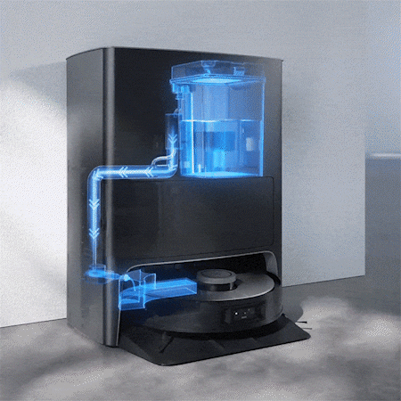 - Dock sạc toàn diện: Tự động dọn rác, tự động giặt và sấy khô khăn lau, tự động thêm nước lau sàn, khử trùng và bơm nước vào trong hộp chứa trên robot tiện lợi và nhanh chóng.