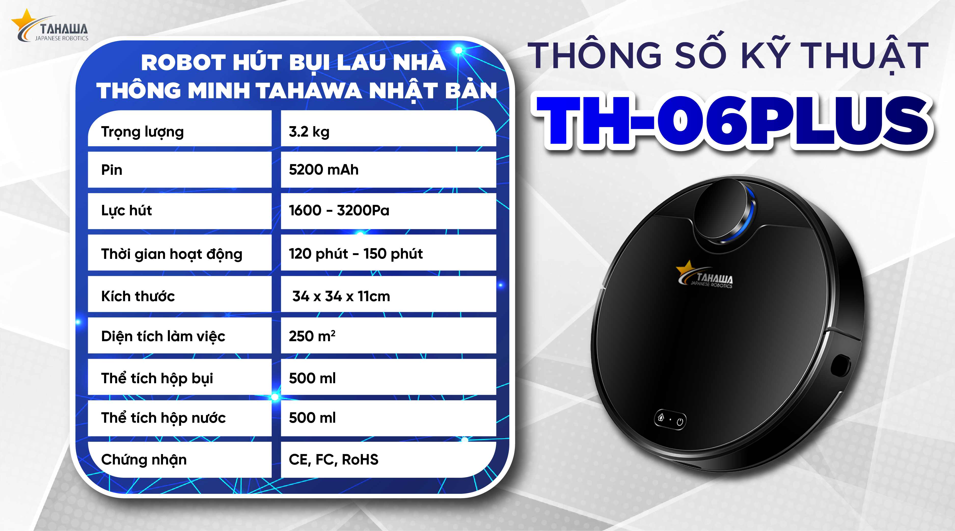 Thông số kỹ thuật của robot hút bụi lau nhà Tahawa TH-06Plus