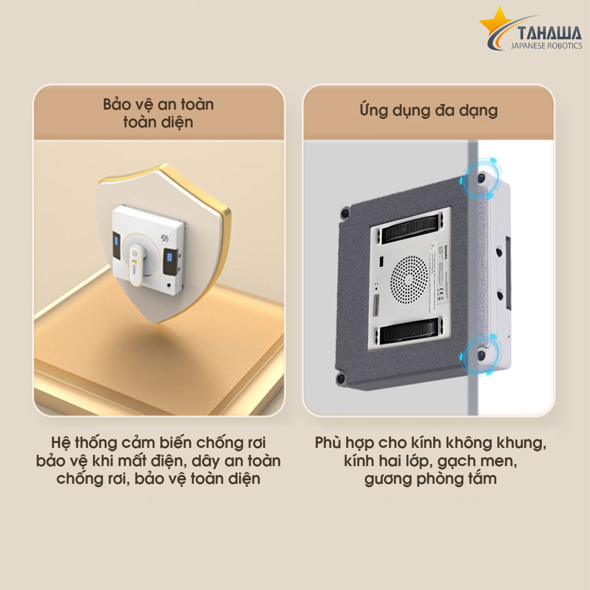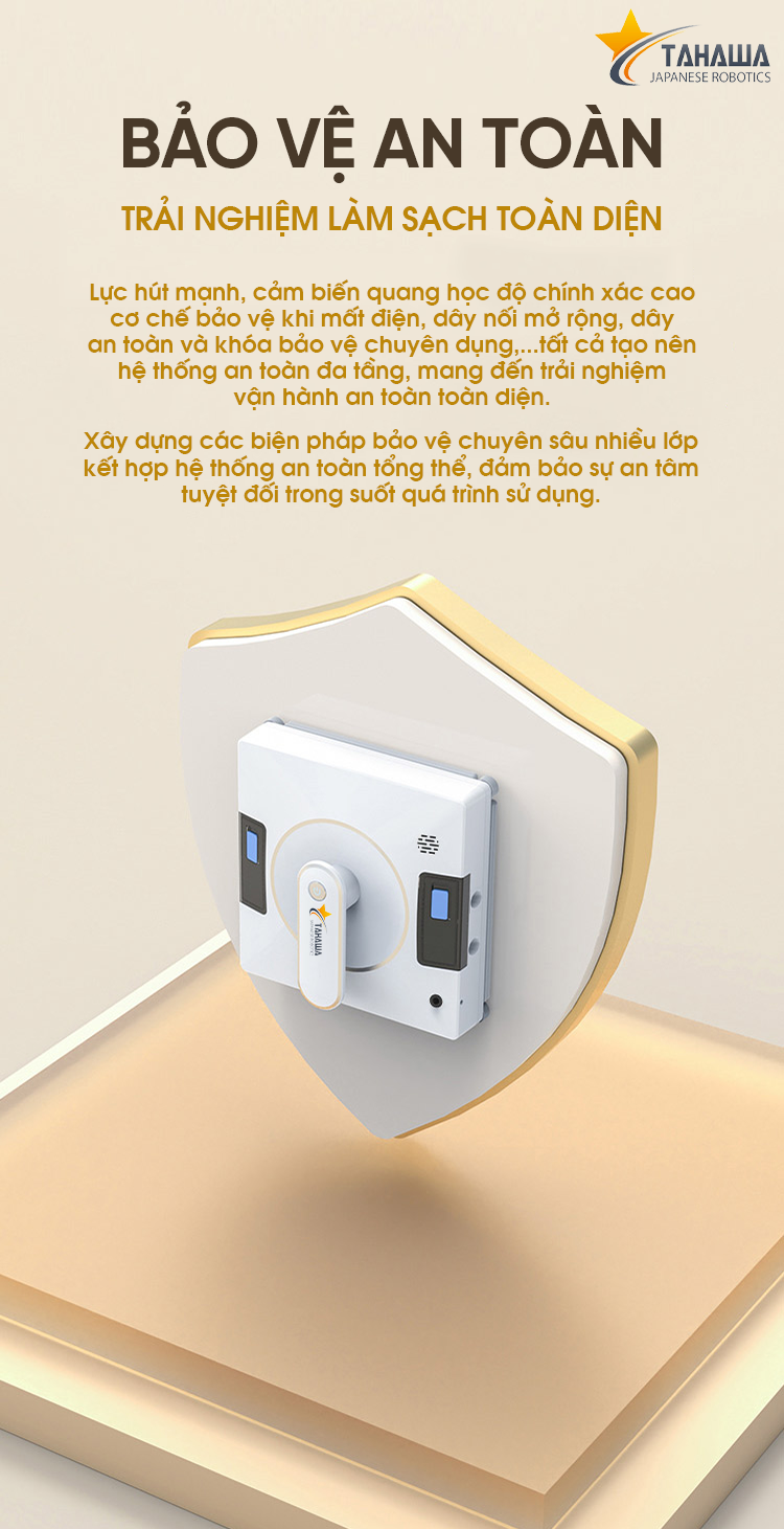 Một trong những ưu điểm then chốt của robot lau kính Tahawa TH-YW530 Phiên Bản Nâng Cấp 2026 chính là hệ thống bảo vệ toàn diện, giúp đảm bảo an toàn tuyệt đối trong quá trình vận hành, đặc biệt là khi sử dụng ở độ cao.