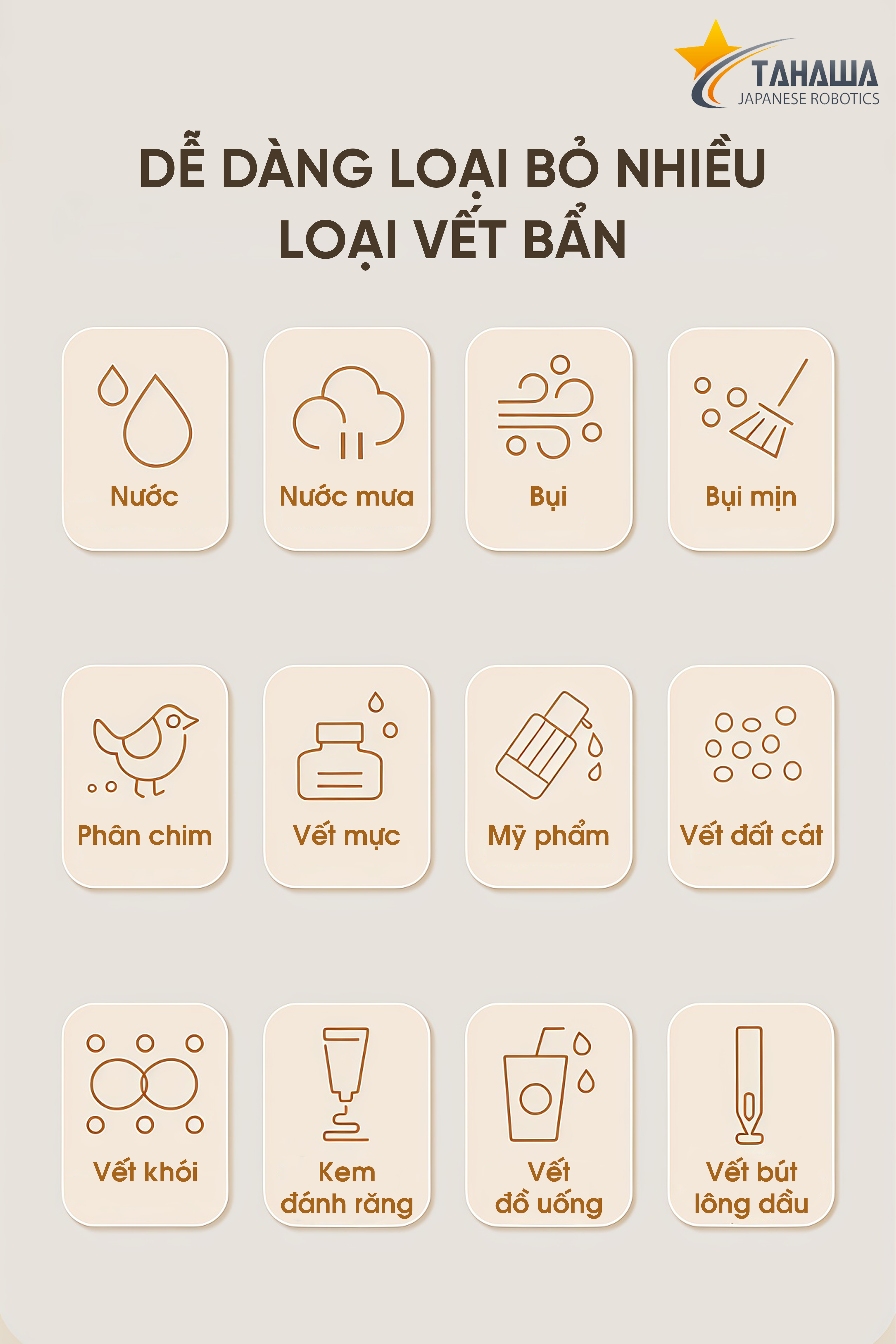 Hệ thống phun nước của Tahawa TH-YW530 Phiên Bản Nâng Cấp 2026 không chỉ đơn thuần là tiện ích, mà còn là bước tiến trong công nghệ làm sạch tự động. Nước được phun dạng sương mịn giúp làm mềm các vết bẩn, trong khi miếng lau Microfiber phía sau nhanh chóng hút sạch mà không gây trầy xước bề mặt kính. Nhờ đó, robot có thể làm sạch hiệu quả ngay cả với vết dầu, bụi mịn hoặc cặn nước mưa lâu ngày bám trên bề mặt.