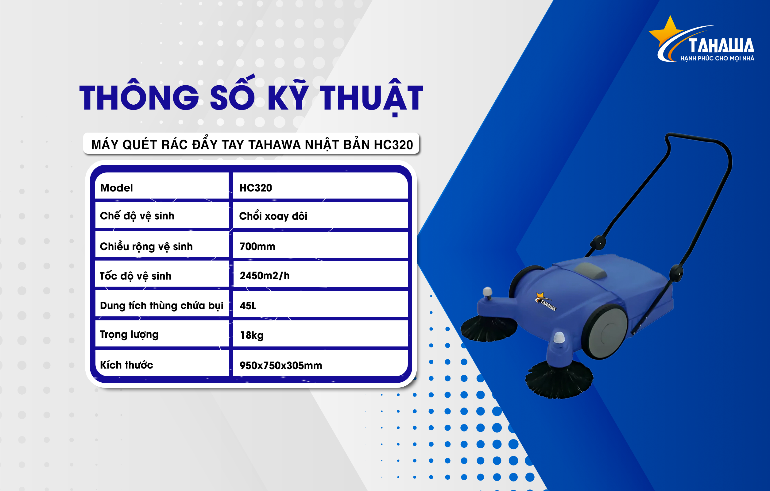 2. Thông số kỹ thuật sản phẩm Tahawa Nhật Bản HC320