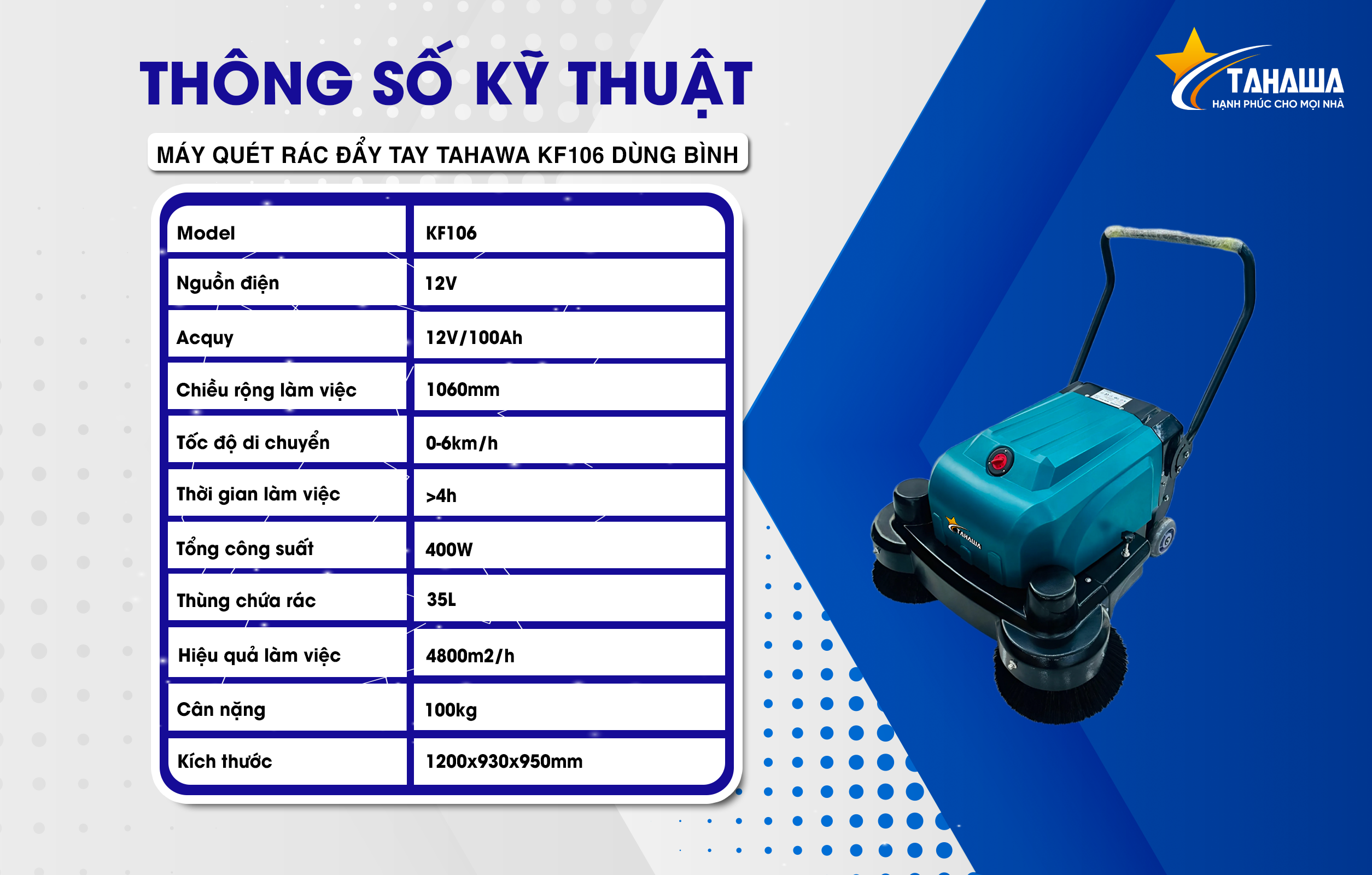 Nếu bạn đang tìm kiếm một dòng xe quét rác đẩy tay dùng bình, hoạt động linh hoạt, hiệu quả cao và thân thiện với môi trường, Tahawa KF106 xứng đáng là lựa chọn hàng đầu.
