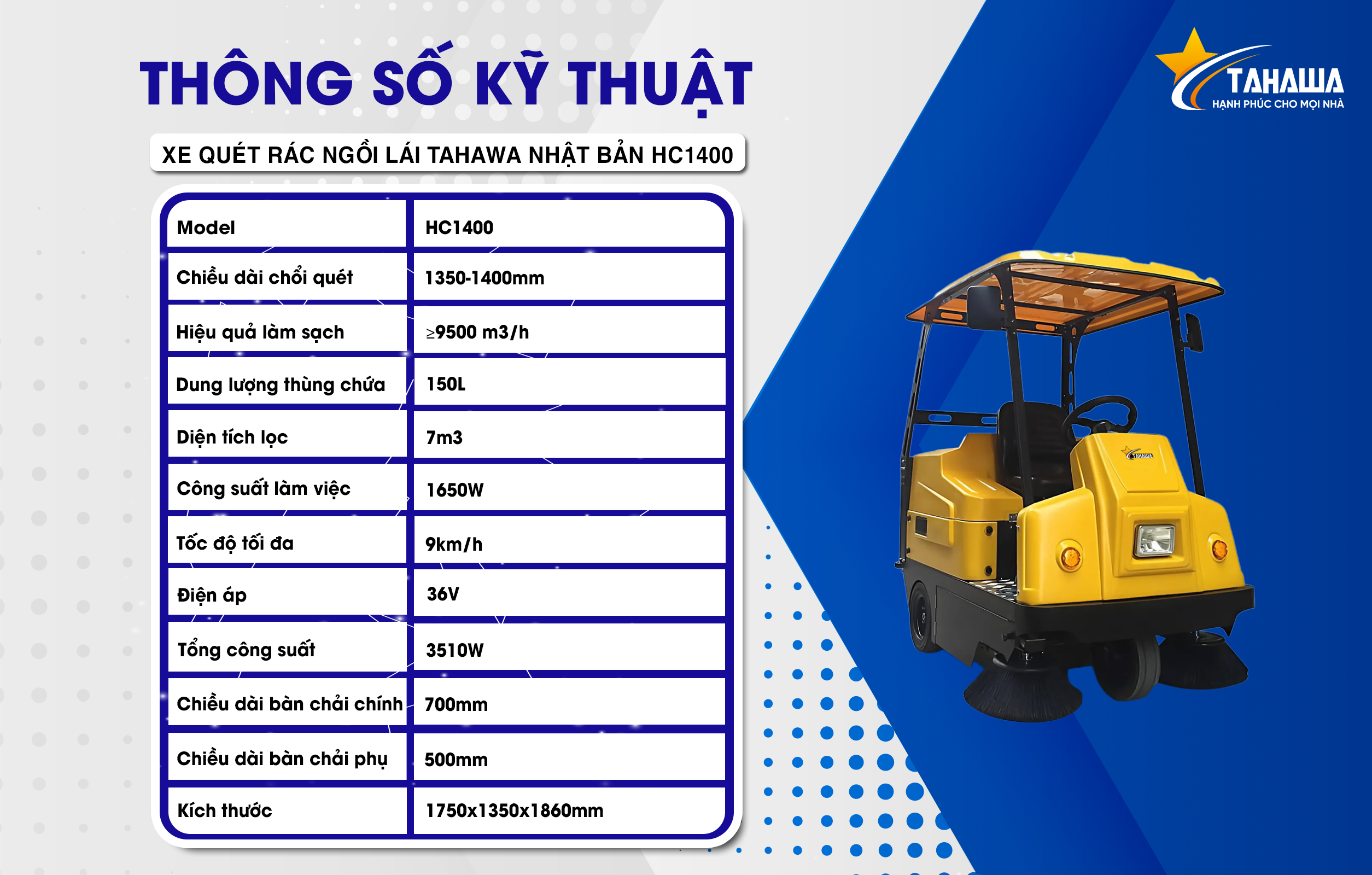 Từ đô thị, khu công nghiệp đến các khuôn viên rộng lớn, nhu cầu về vệ sinh môi trường ngày càng được đặt lên hàng đầu. Trong bối cảnh đó, những thiết bị quét rác chuyên dụng như xe quét rác ngồi lái Tahawa Nhật Bản HC1400 đang dần khẳng định vai trò quan trọng trong việc nâng cao hiệu quả làm sạch, tối ưu chi phí và tiết kiệm thời gian vận hành.
