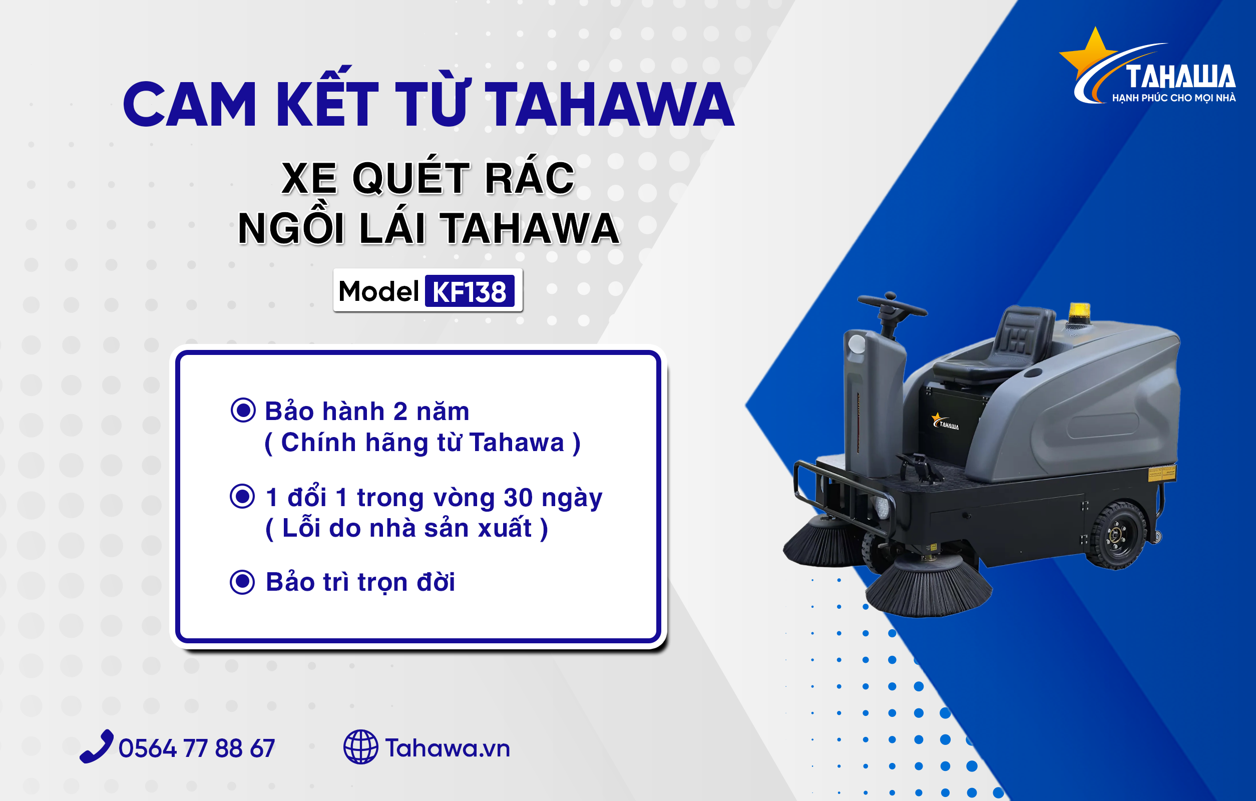 Sản phẩm máy quét rác ngồi lái Tahawa KF138 được bảo hành chính hãng kèm theo các chính sách hậu mãi như: