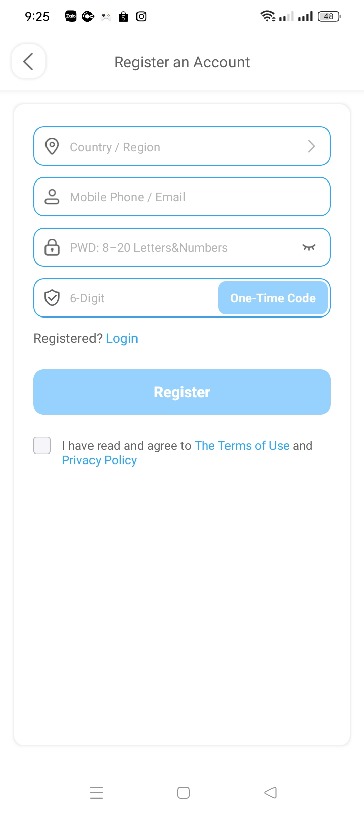 Bước 4: Bạn nhập các thông tin đăng ký mới bao gồm: quốc gia, số điện thoại hoặc email (khuyên dùng email), mật khẩu và ấn resend, lúc này mã sẽ gửi về email, bạn chỉ cần vào email lấy mã và nhập vào ô trống rồi tích dấu tích vào ô I have read and agree... rồi ấn đăng ký.