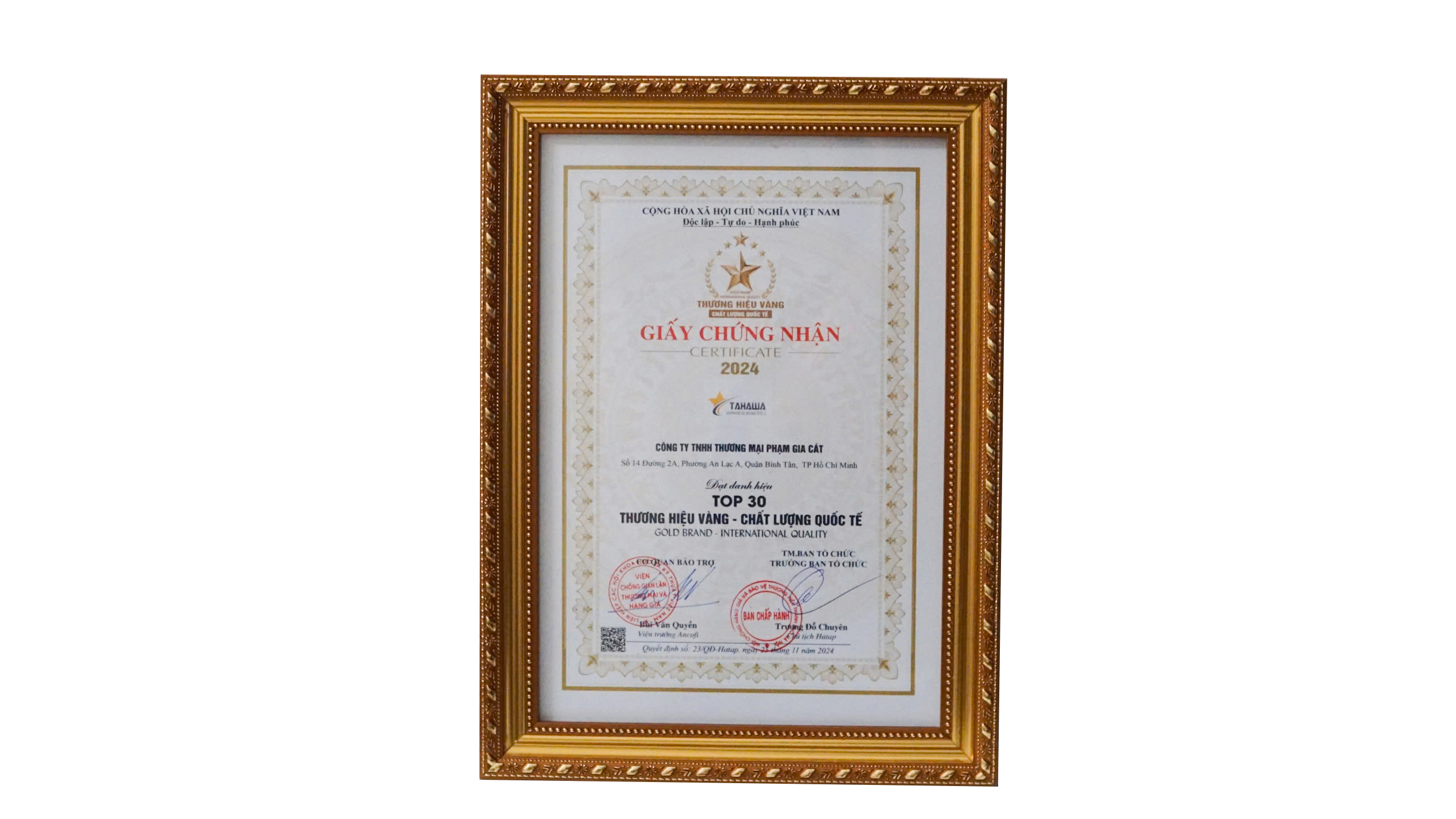 Với sự nỗ lực không ngừng, Tahawa đã lọt Top 30 Thương Hiệu Vàng – Chất Lượng Quốc Tế 2024, một giải thưởng danh giá do Trung tâm Chống Hàng Giả và Bảo Vệ Thương Hiệu Hà Nội phối hợp cùng Viện Chống Gian Lận Thương Mại và Hàng Giả thực hiện. Thành tích này không chỉ minh chứng cho chất lượng sản phẩm mà còn thể hiện sự tin tưởng của người tiêu dùng vào thương hiệu Tahawa.