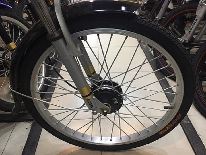 Xe đạp điện thường sử dụng bánh xe có kích thước từ 16 đến 28 inch, tùy thuộc vào loại xe và mục đích sử dụng. Lốp xe có thể là loại lốp hơi hoặc lốp đặc: