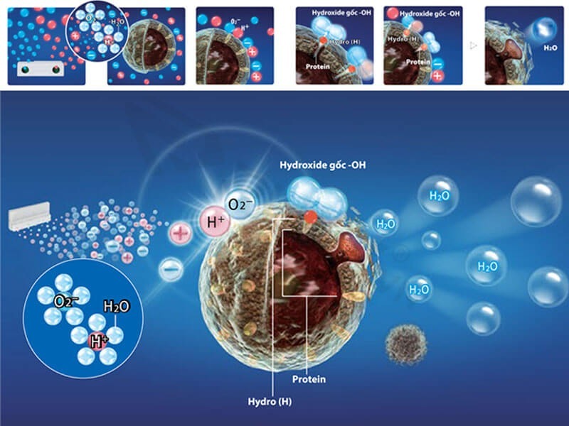 Để hiểu rõ cách công nghệ này hỗ trợ loại bỏ thuốc trừ sâu, cần xem xét quá trình điện phân nước trong thiết bị.