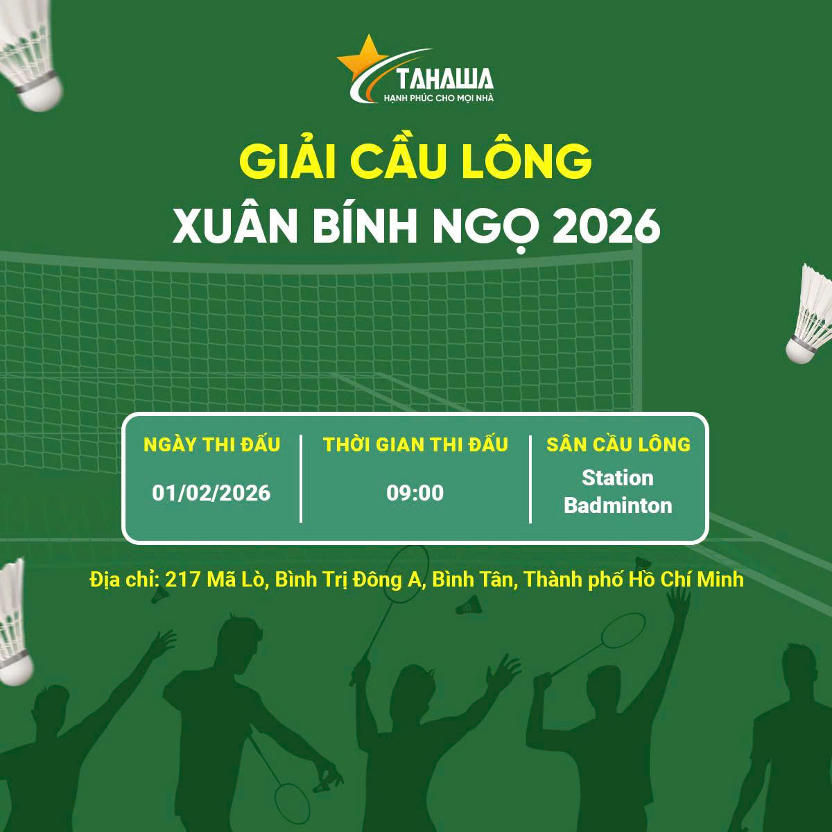 Với định hướng phát triển bền vững dựa trên con người làm trung tâm, Tahawa không ngừng chú trọng xây dựng môi trường làm việc năng động, khỏe mạnh và gắn kết. Tiếp nối tinh thần đó, “Giải Cầu Lông Xuân Bính Ngọ 2026” chính thức được tổ chức dành cho toàn thể cán bộ nhân viên công ty.