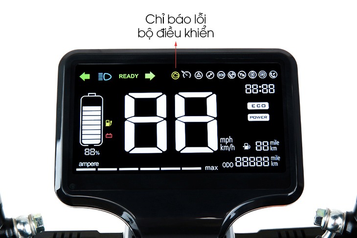 - Báo lỗi bộ điều khiển: Đây là tính năng đặc biệt của xe máy điện, khi bạn sử dụng bộ điều khiển sai hay có lỗi thì trên màn hình sẽ hiển thị thông báo này lên cho bạn biết, hiện tượng nhìn rõ nhất của lỗi này là động cơ sẽ phát ra ra âm thanh to hoặc bánh bị bó không chạy được. Lúc này bạn có thể tìm kiếm và khắc phục để giữ xe bền và tốt hơn.
