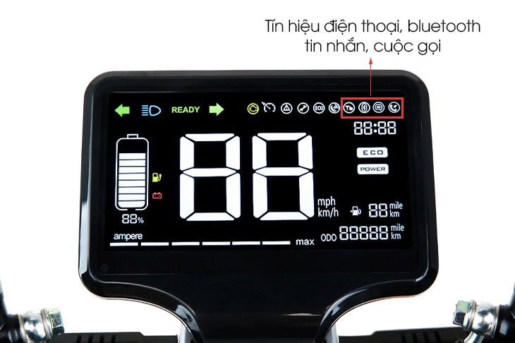 - Chỉ báo điện thoại, bluetooth, tin nhắn, cuộc gọi trên xe: Với tính năng đồng bộ hiển thị với điện thoại trên màn hình xe giúp bạn thuận tiện nhận tin nhắn, xem cuộc gọi đến dưới dạng đèn báo của đồng hồ xe. Ngoài ra, xe còn có đèn báo bluetooth thông báo cho bạn xe của mình đã kết nối bluetooth với thết bị di động hay chưa.