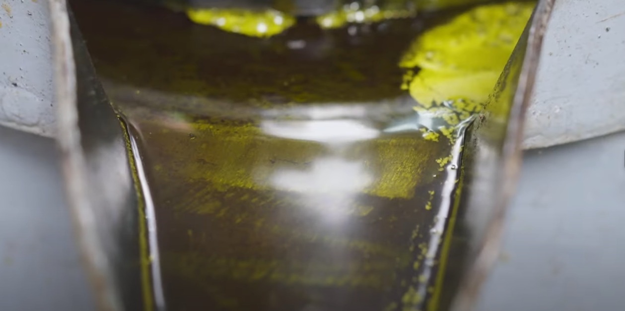 Thu riêng phần dầu và bã, lọc dầu qua phễu lọc trước khi chứa vào bình.