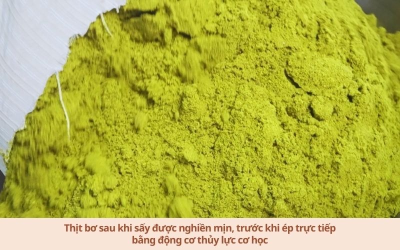 Sau khi sấy, nghiền bơ thành bột mịn giúp tăng khả năng thu hồi dầu trong quá trình ép.