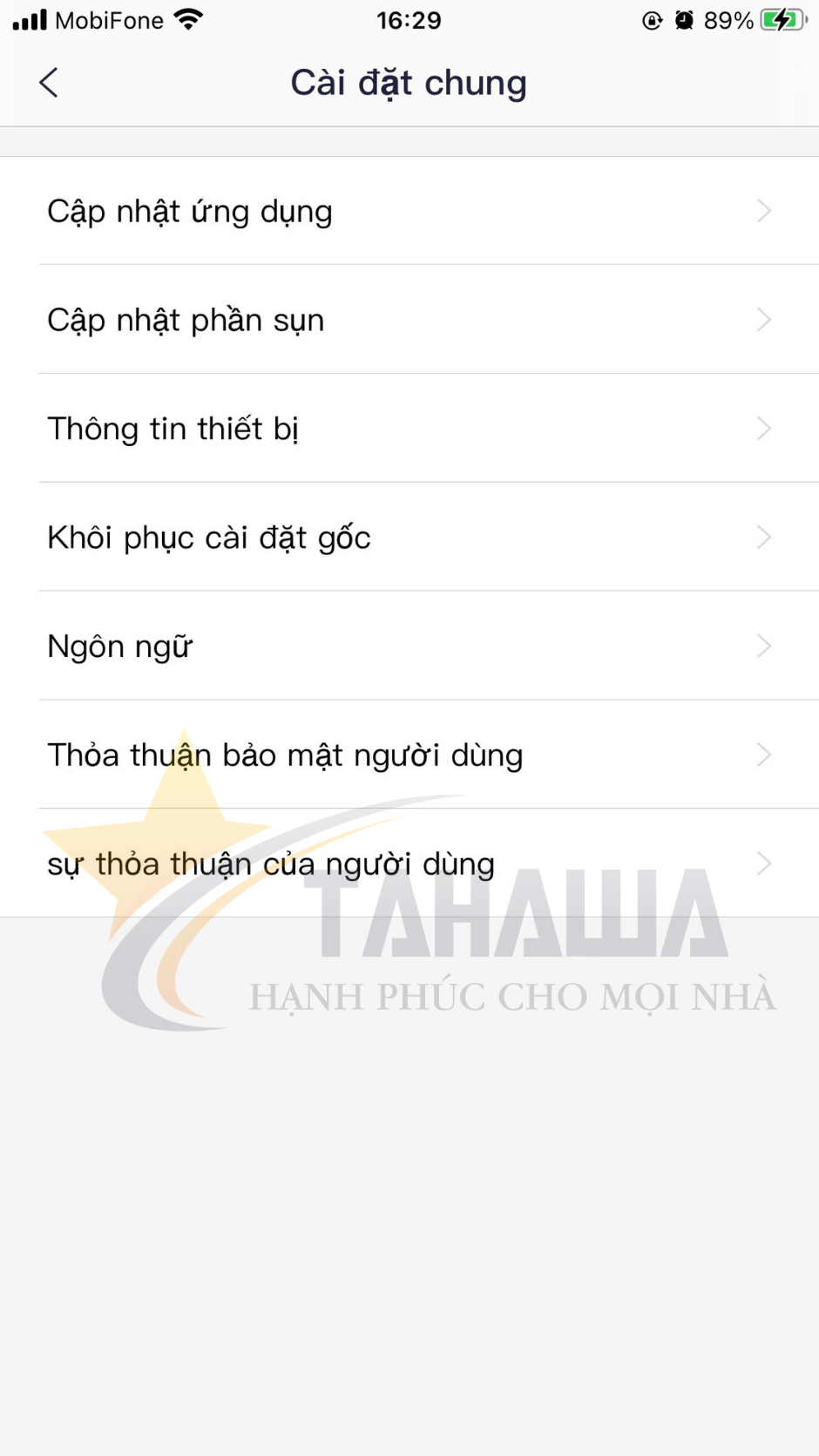 Cài đặt chung: Ở phần này, chúng ta có thể cập nhật ứng dụng, khôi phục cài đặt gốc - nếu robot bị lỗi trong quá trình làm việc ngoài ra có thể kiểm tra thông tin thiết bị và lựa chọn ngôn ngữ tùy thích.