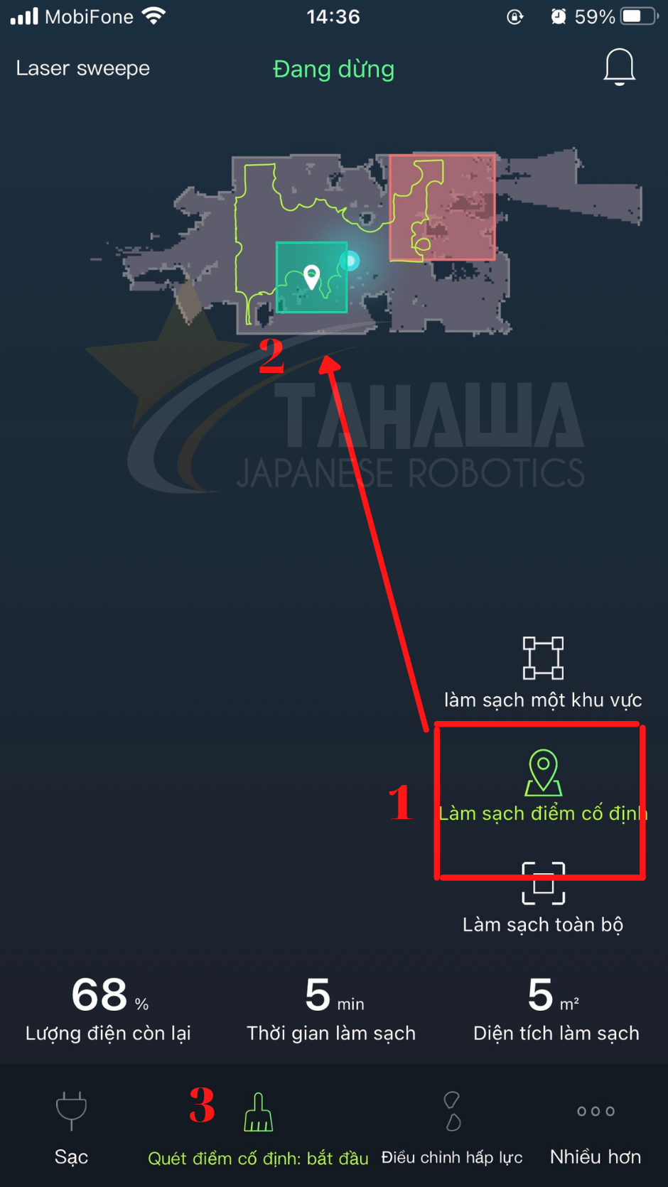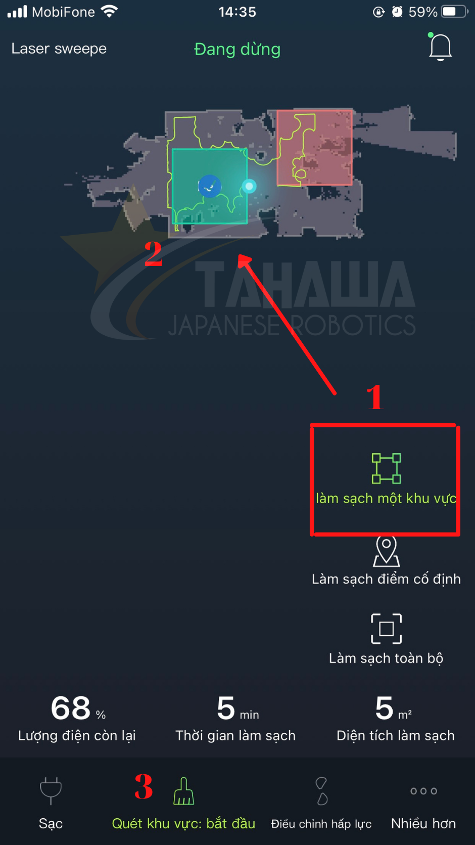 Làm sạch một khu vực trên App của robot hút bụi Tahawa Nhật Bản TH-06Plus